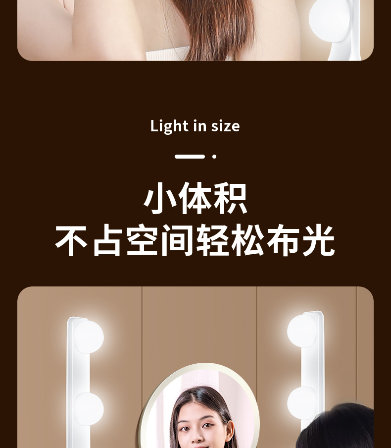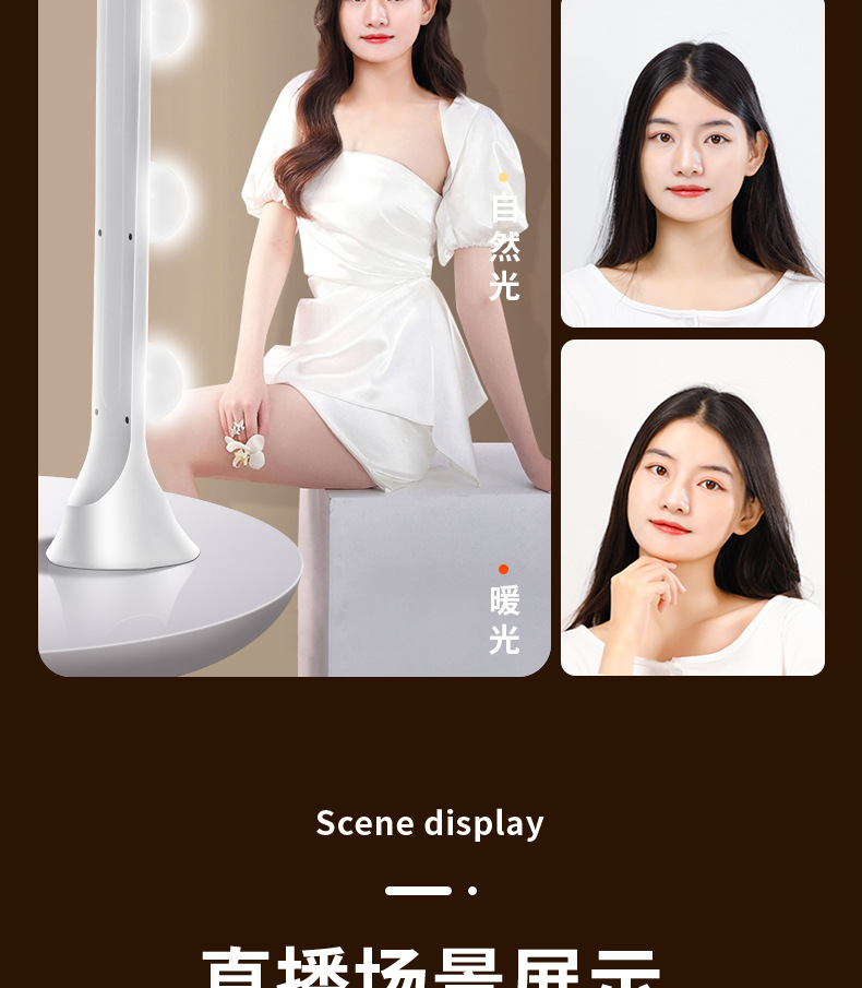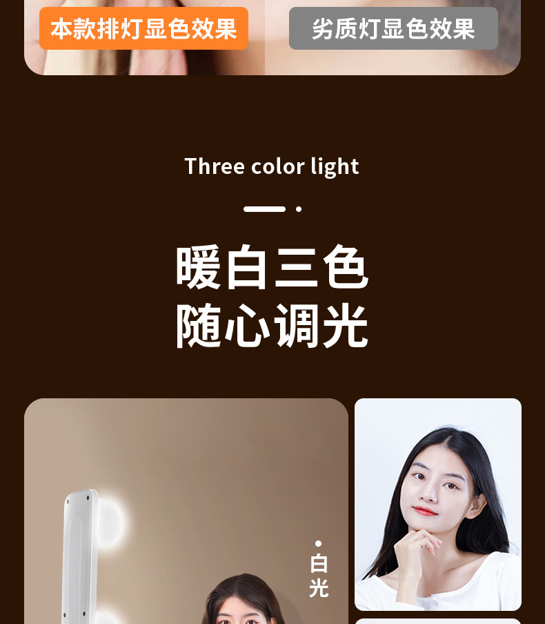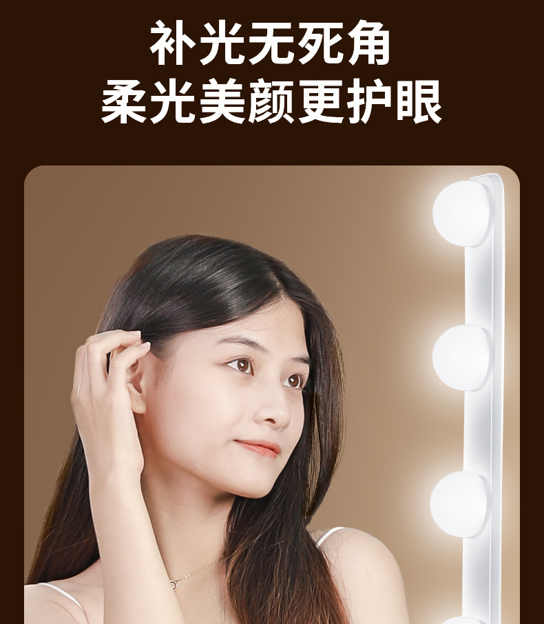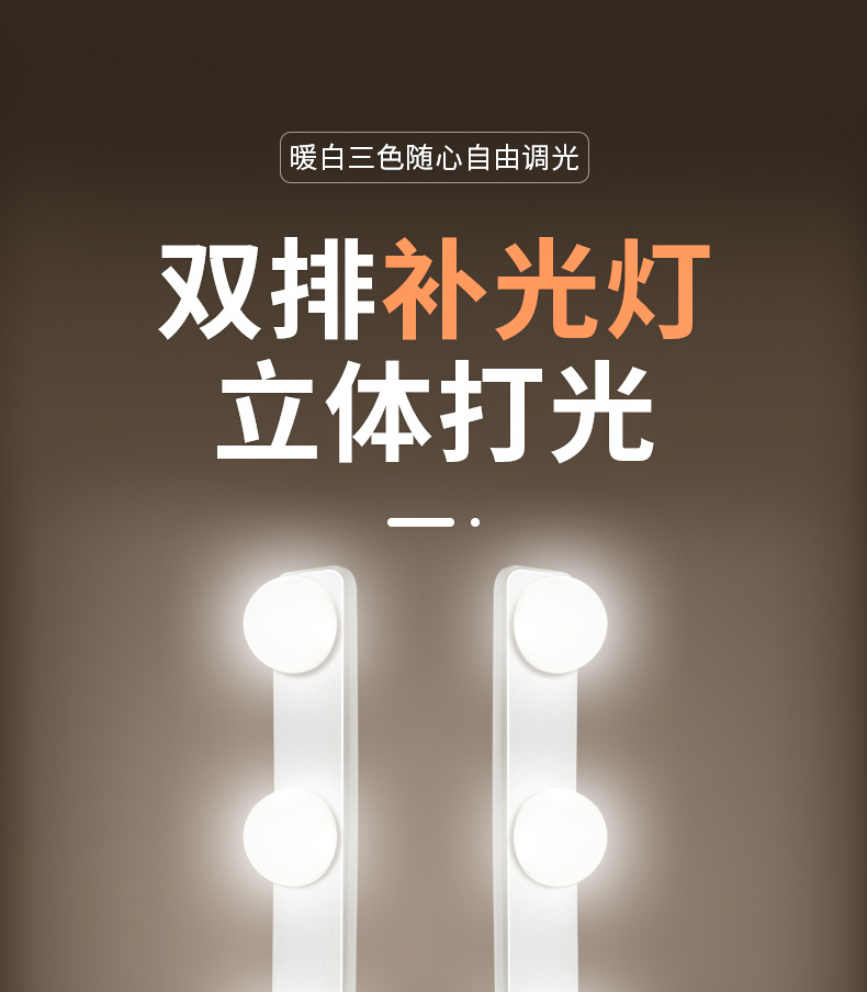 | Color de la fuente de luz | [Blanco puro] 4 luces integradas de una sola fila (atenuación infinita de tres colores),[Blanco puro] 8 luces integradas de doble fila (atenuación infinita de tres colores),[Rosa y blanco] 4 luces integradas de una sola fila (atenuación infinita de tres colores),[Rosa y blanco] 8 luces integradas de doble fila (atenuación infinita de tres colores),[Azul cielo] 4 luces integradas de una sola fila (atenuación infinita de tres colores),[Azul cielo] 8 luces integradas de doble fila (atenuación infinita de tres colores),[Negro puro] 4 luces integradas de una sola fila (atenuación infinita de tres colores),[Negro puro] 8 luces integradas de doble fila (atenuación infinita de tres colores),Luz de relleno LED de una sola fila (atenuación infinita de tres colores),Luz de relleno LED de doble fila (atenuación infinita de tres colores) |