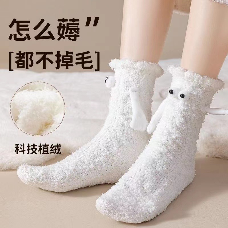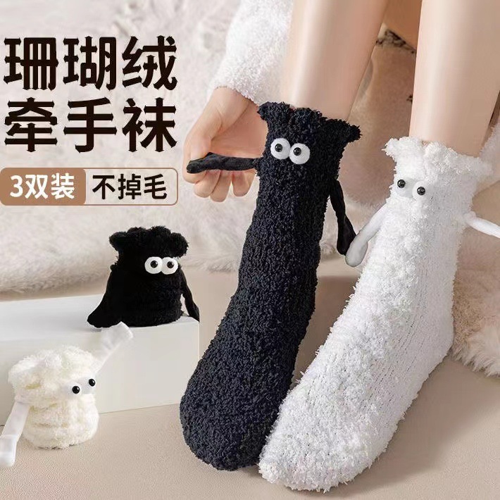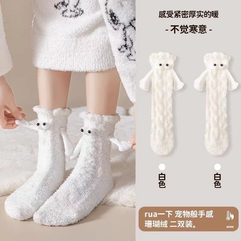 Calcetines de mano para mujer Otoño e Invierno coral fleece calcetines de media pantorrilla ins moda lindo grueso cálido confinamiento transpirable calcetines de piso