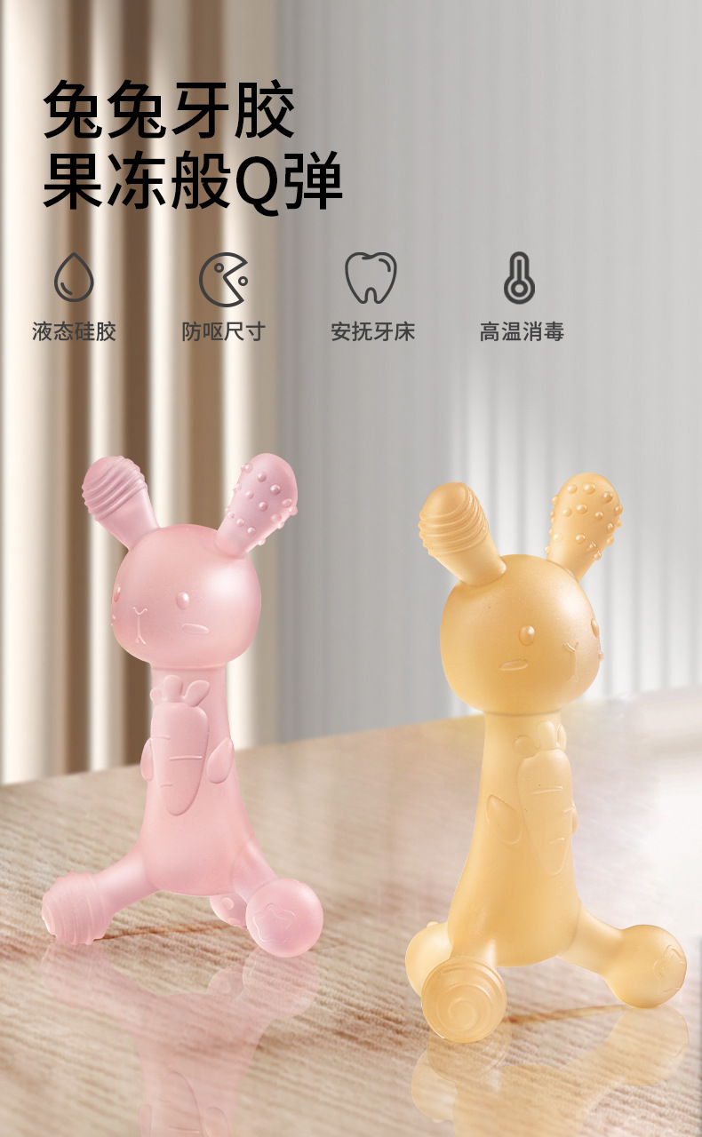 Mortal de conejo de rábano Palo molar para bebés Bebé Gel líquido de silicona de grado alimenticio para bebés Juguete artefacto anti-comer