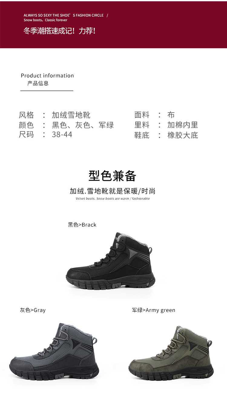 Cross-border botas de nieve de los hombres de invierno cálido forro polar grueso alto-top zapatos de algodón al aire libre impermeable antideslizante más tamaño botas de algodón