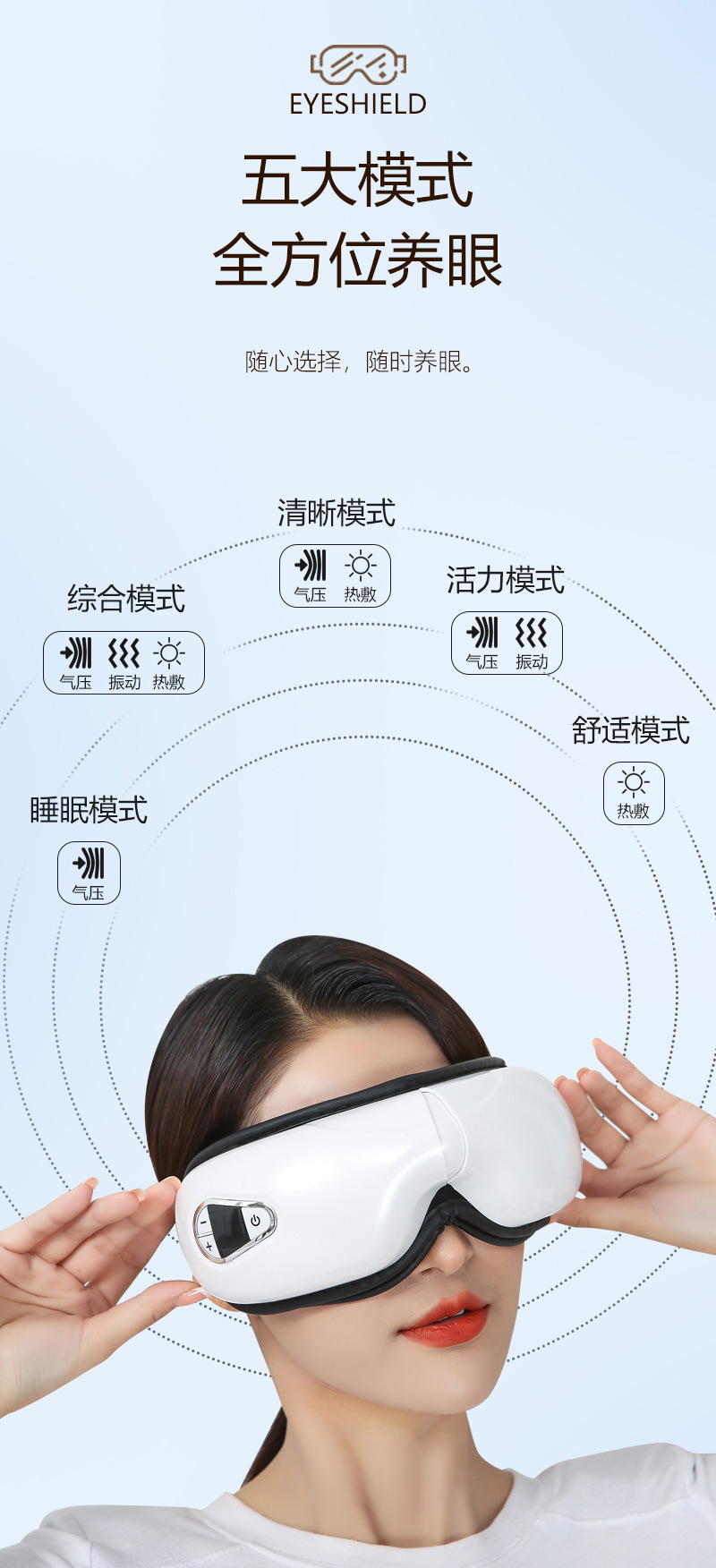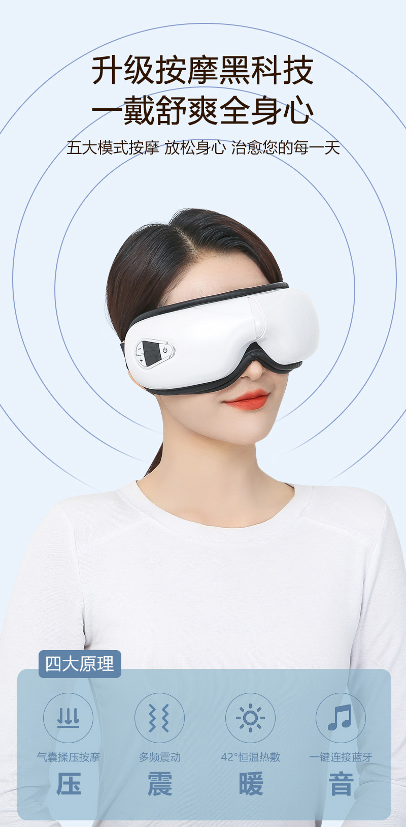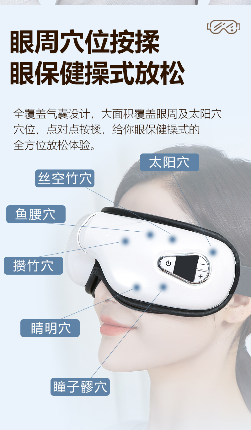 Transfronterizo nuevo inteligente Bluetooth Visión Entrenamiento calmante fatiga ojo protector ojo instrumento de masaje para los niños