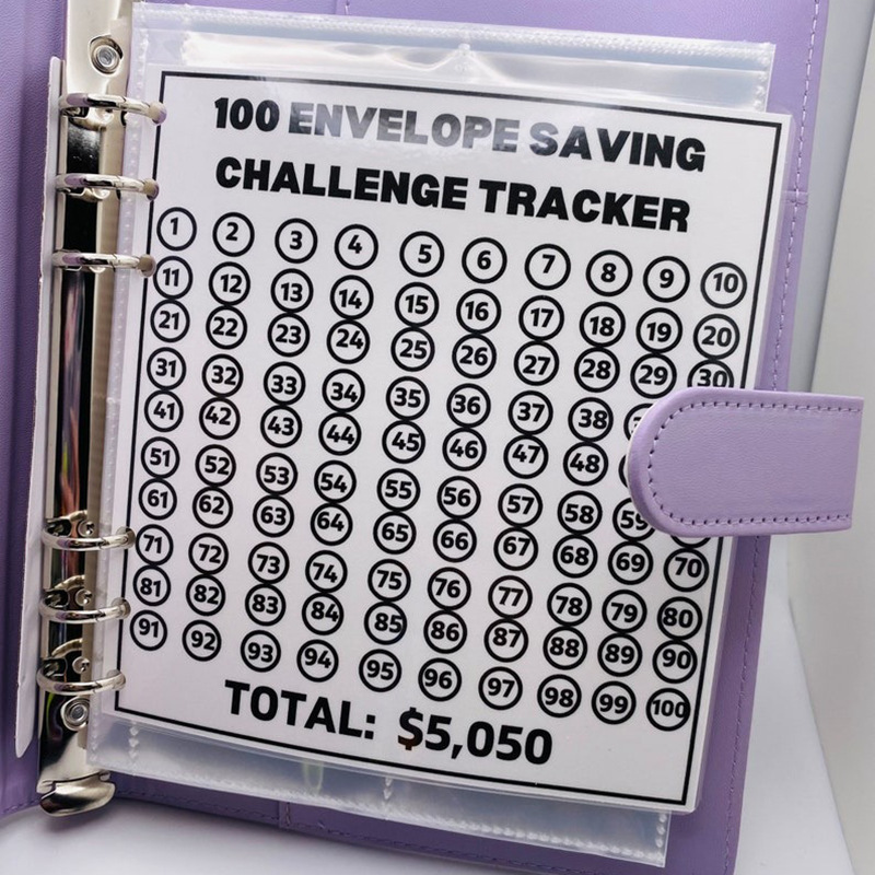 100 sobre desafío Binder100 sobres guardar desafío A5 cubierta de la carpeta