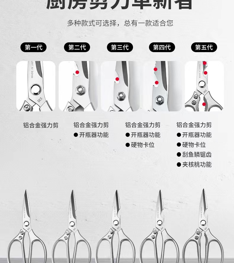 SK5 tijeras de cocina multifuncional de acero inoxidable de cuarta generación tijeras para el hogar comida barbacoa tijeras de hueso de pollo spot al por mayor