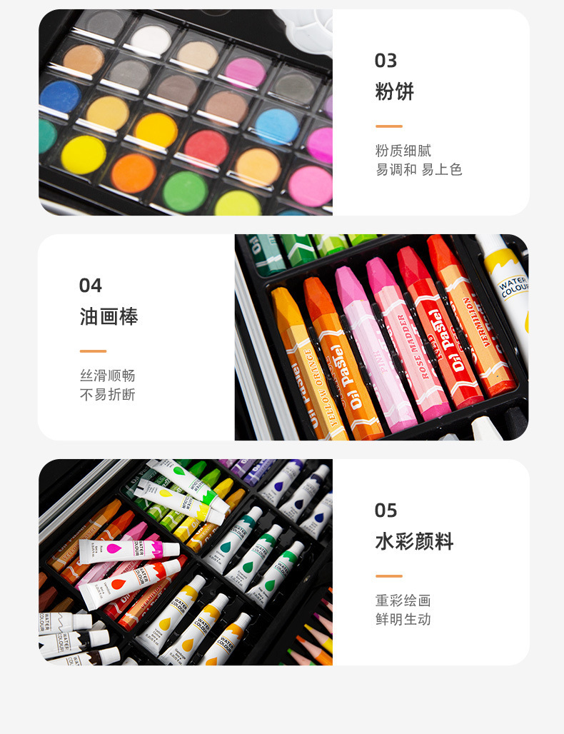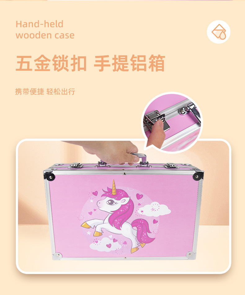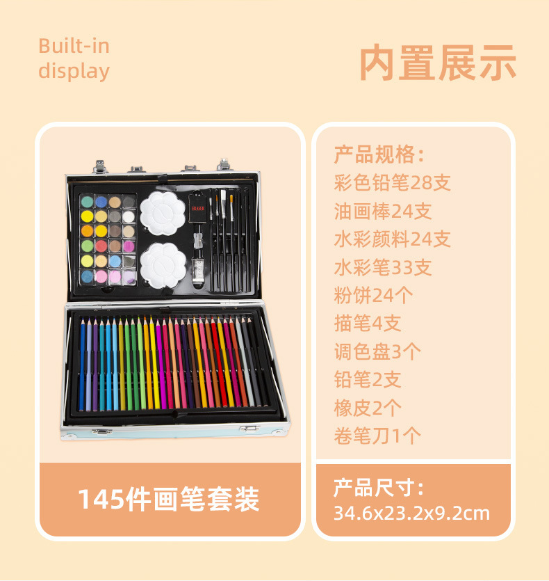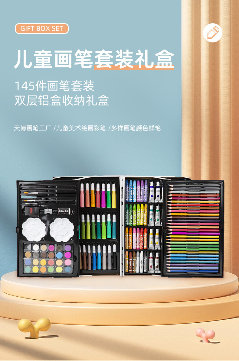 Caja de aluminio de doble capa de 145 piezas Traje de pintura de acuarela para niños Caja de regalo Herramienta de pincel de arte para estudiantes