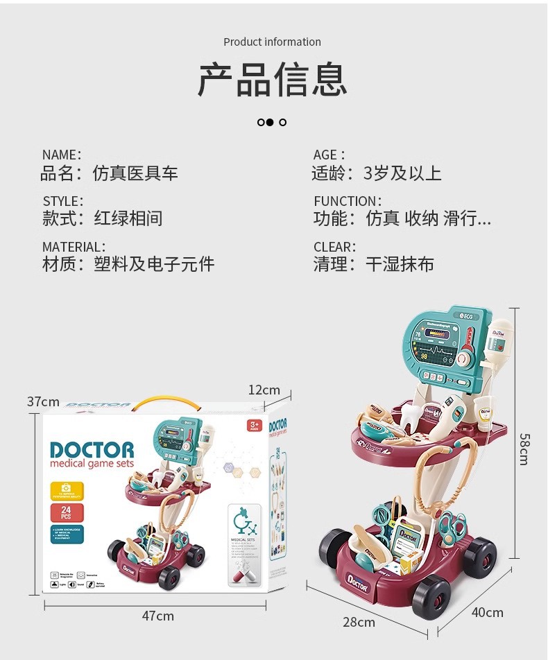 | Colores | Juego de combinación de electrocardiograma de pantalla de rayos X de mesa de tratamiento médico (con luz y sonido 2 cápsulas AAA sin electricidad),Juego de combinación de electrocardiograma de carro de herramientas médicas, luz y sonido,Juego de 26 juegos de pantalla de rayos X de mesa de tratamiento de herramientas médicas |