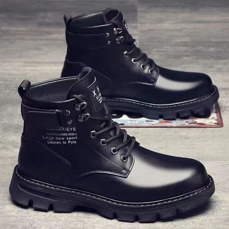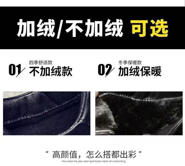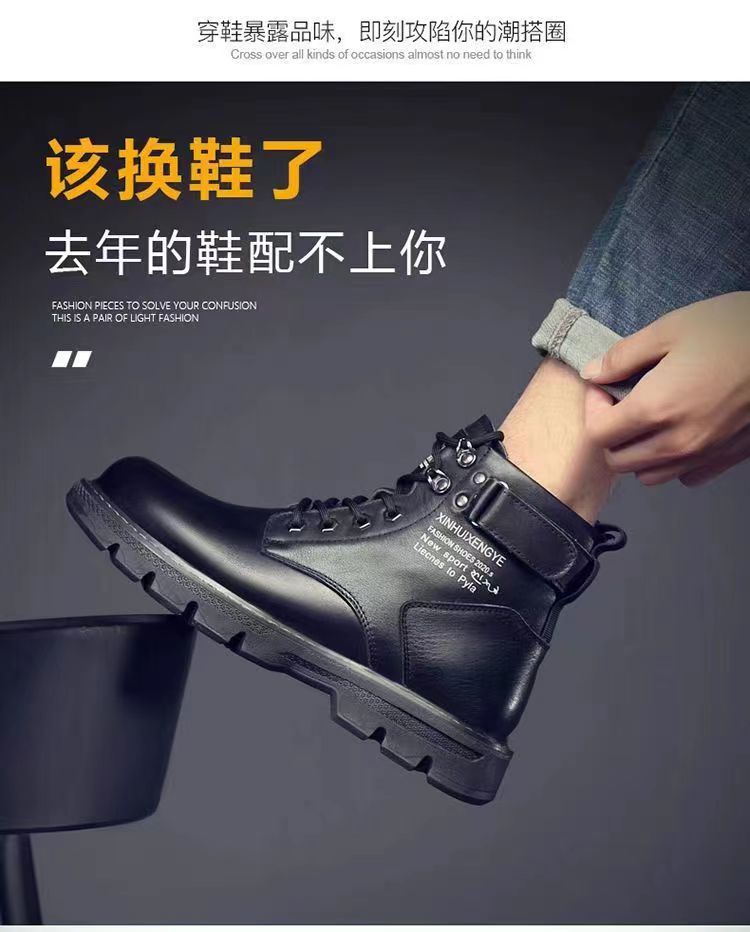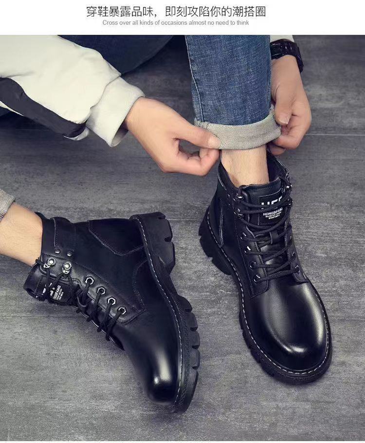 Algodón único para hombres con botas de cuero de alta ayuda Zapatos de algodón casuales antideslizantes fríos Versión Coreana de la tendencia de todos los partidos botas Martin con forro polar