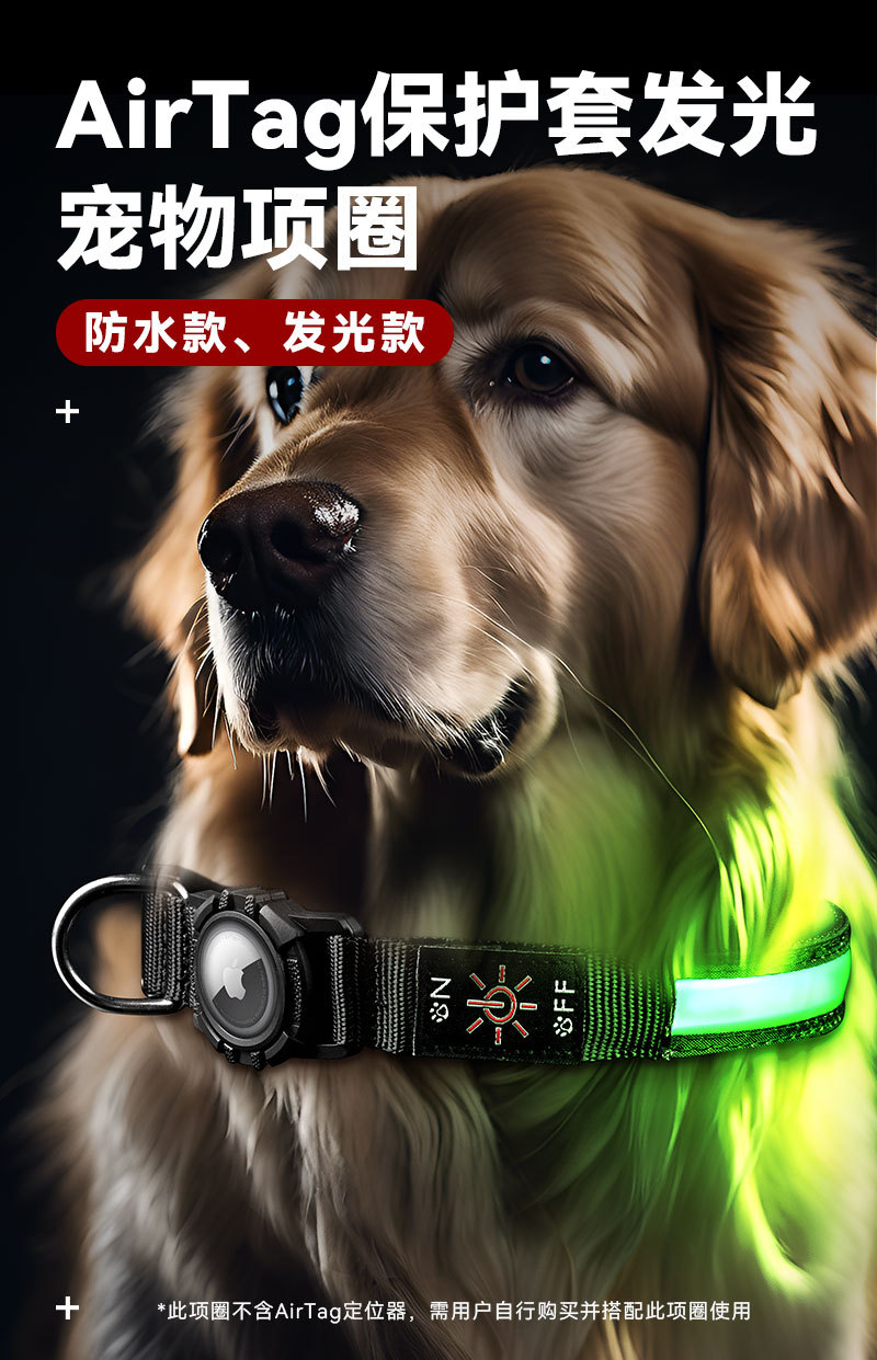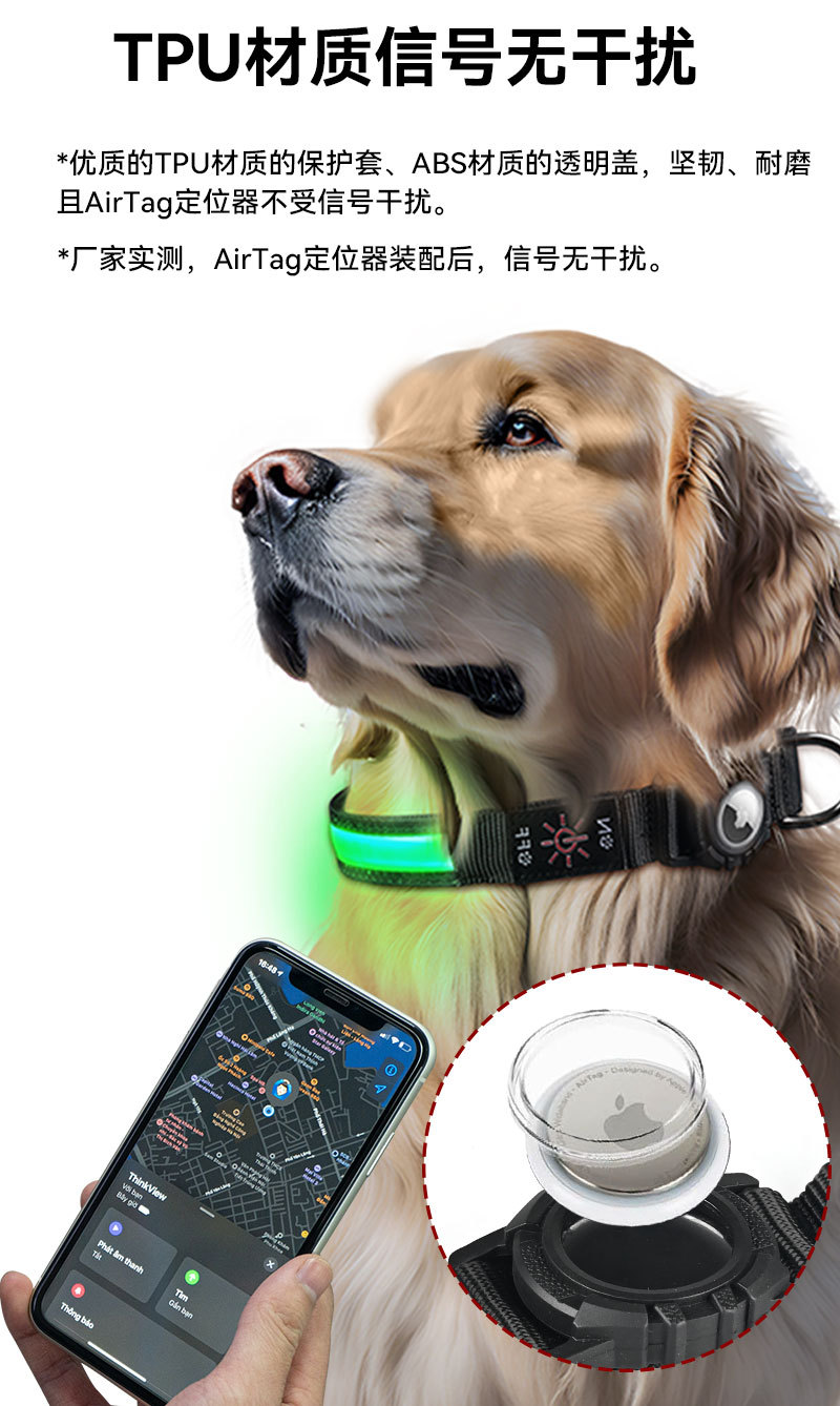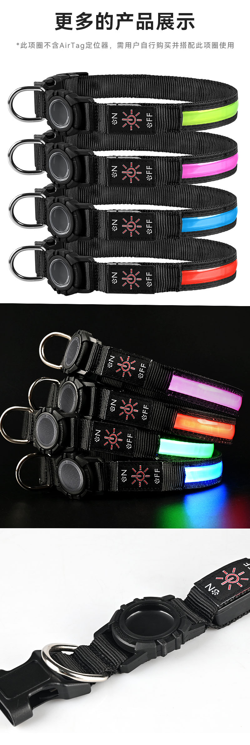 Collar de perro de airtag transfronterizo tipo C recargable impermeable luminoso collar de mascota localizador cubierta collar anti-perdido