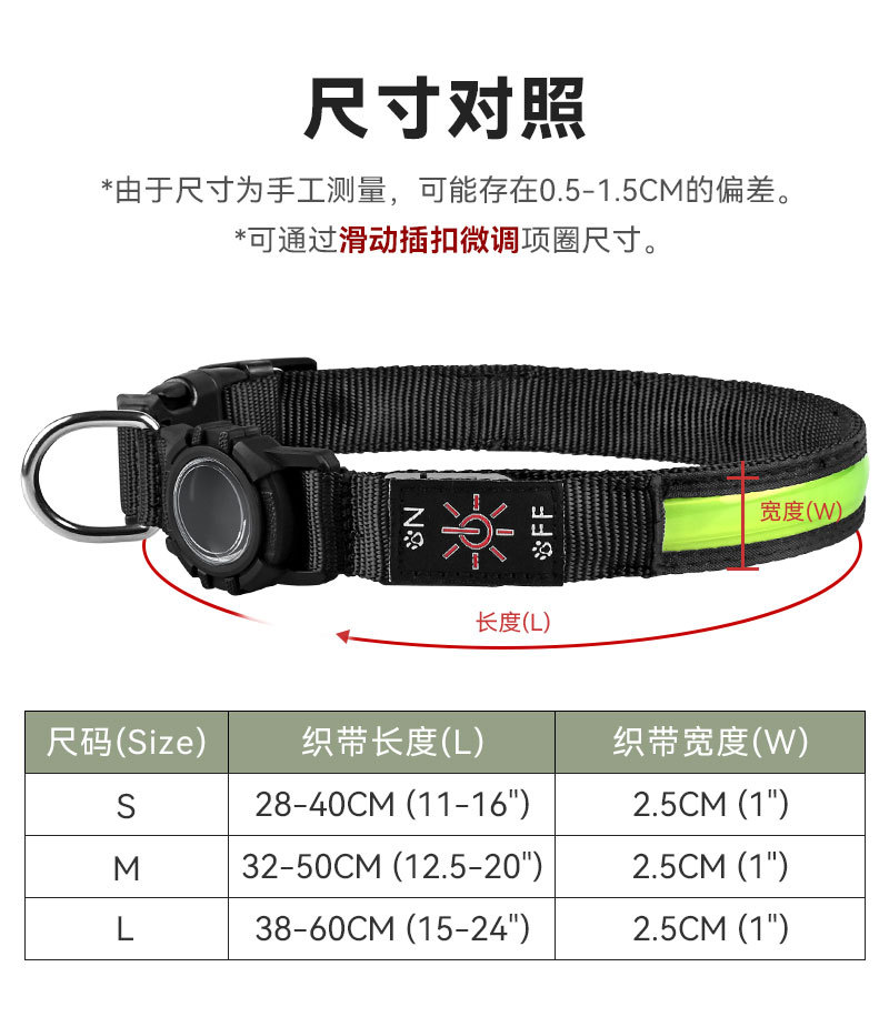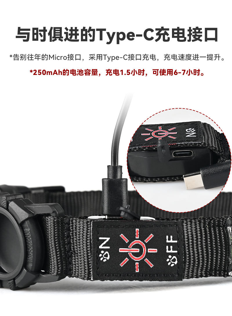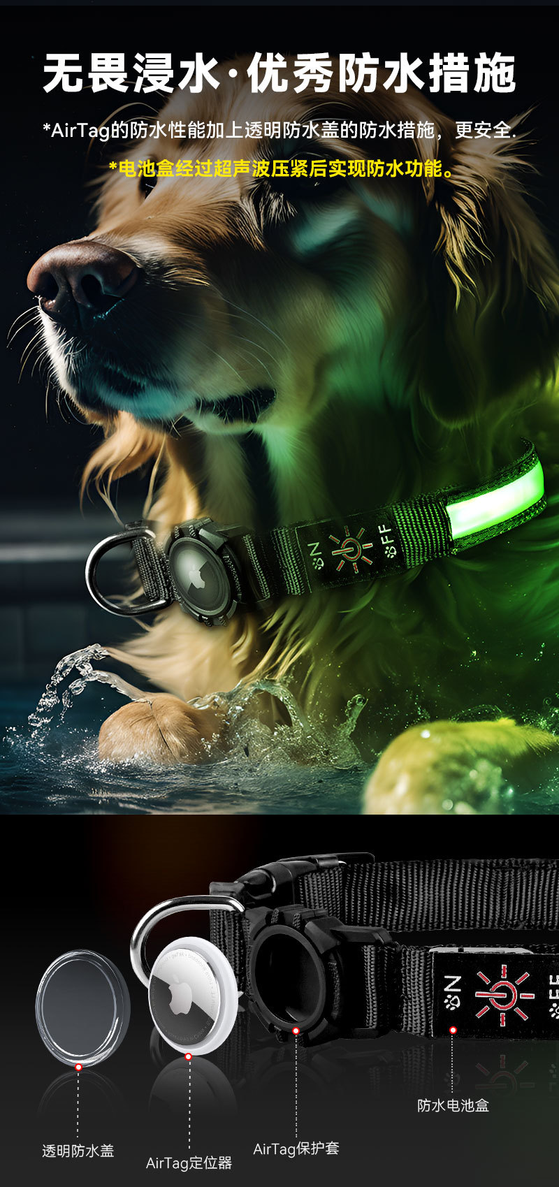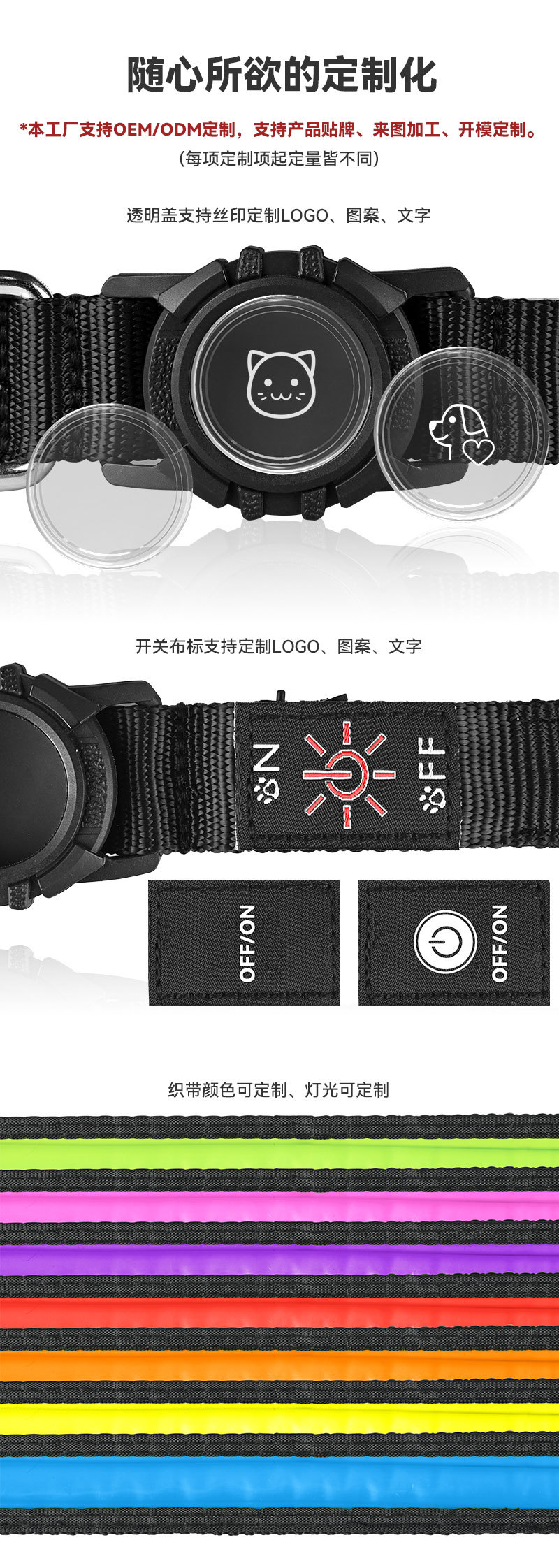 Collar de perro de airtag transfronterizo tipo C recargable impermeable luminoso collar de mascota localizador cubierta collar anti-perdido