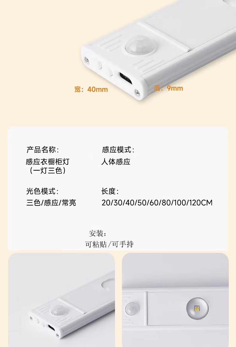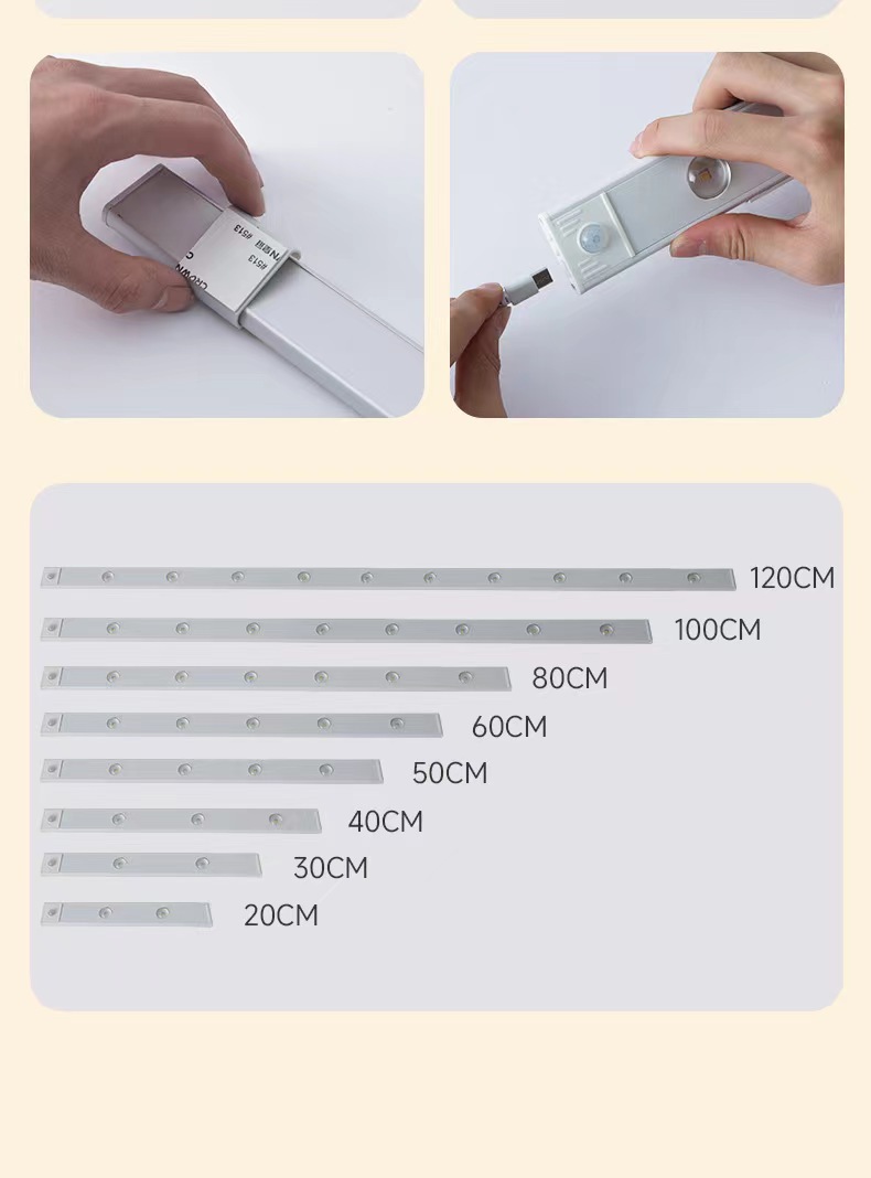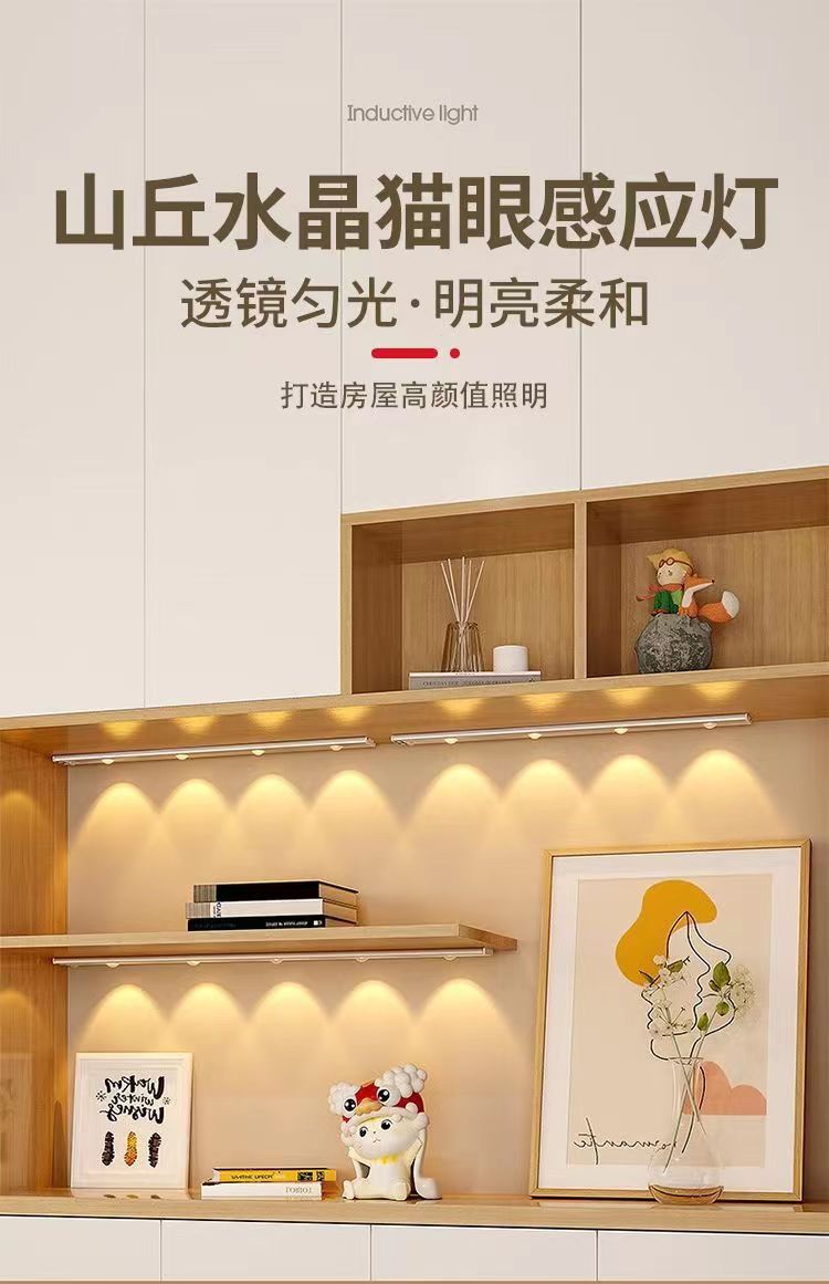 Luz de gabinete de sensor de cuerpo humano ultrafina LED carga inteligente sin perforar zapatero autoadhesivo pasillo gabinete de vino luz de gabinete de exhibición