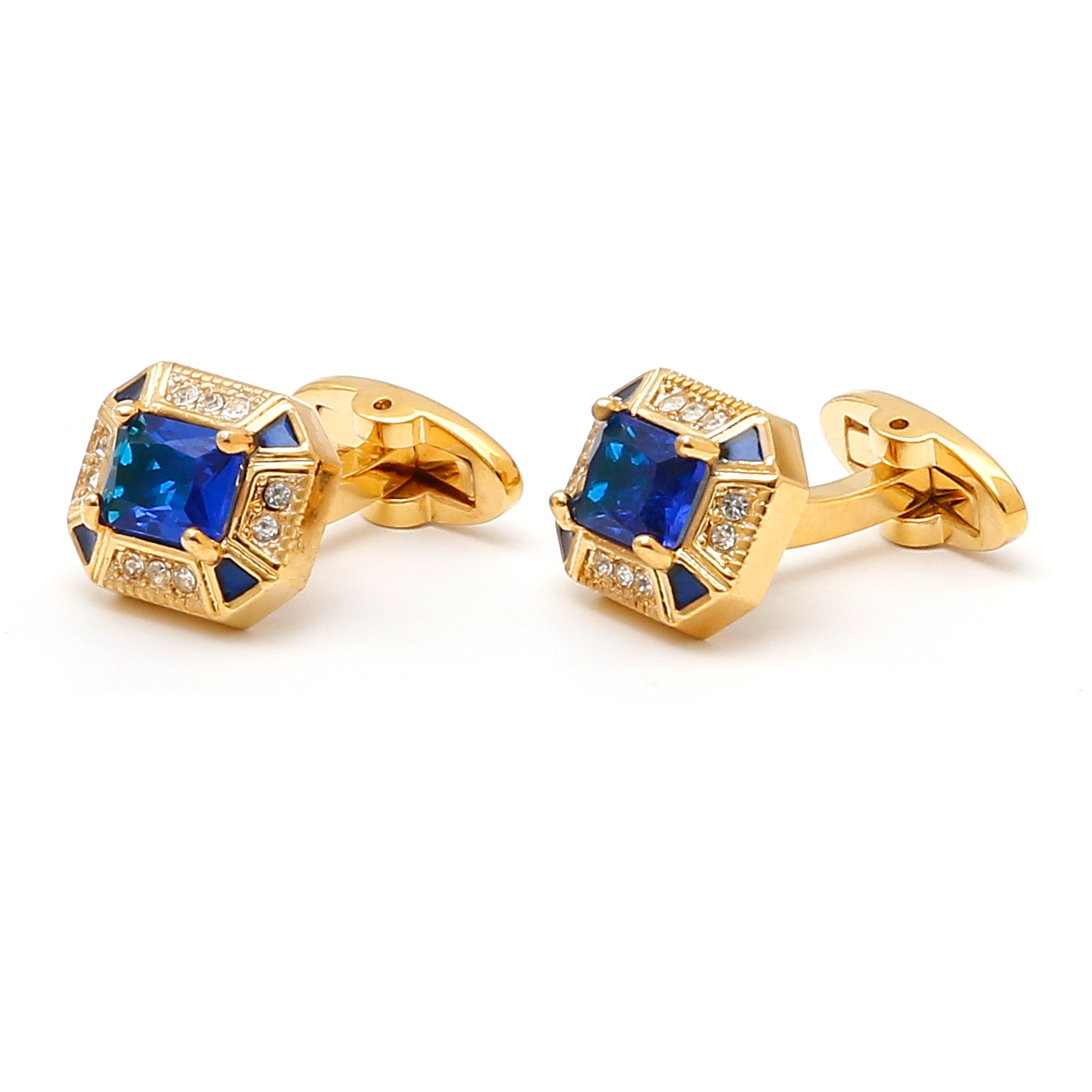 Hombres mancuernas transfronteriza venta caliente de alta calidad de la luz de lujo con incrustaciones de circón azul cuadrado camisa de oro gemelos XK23028