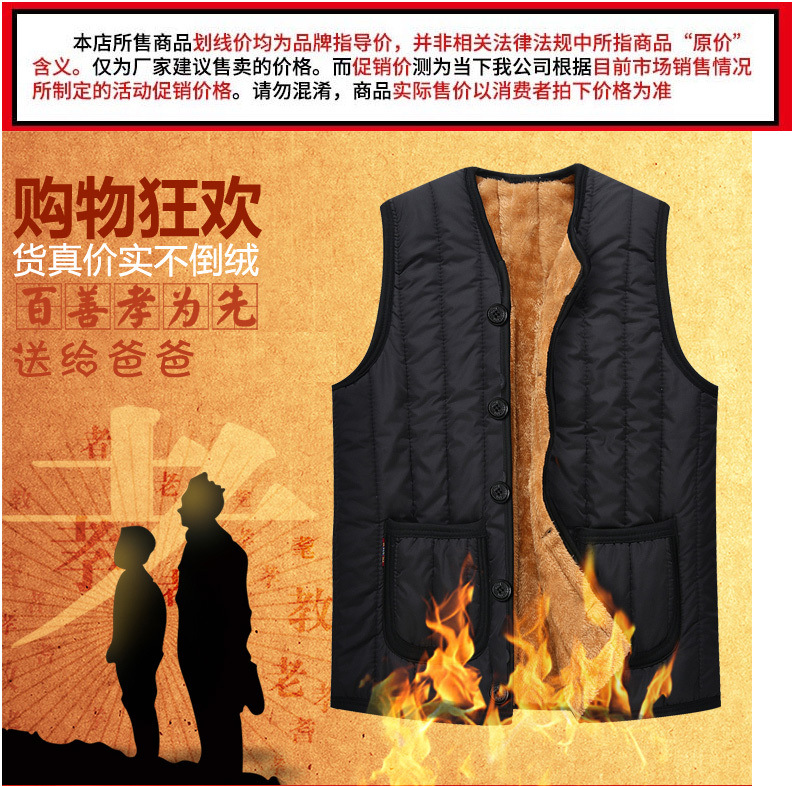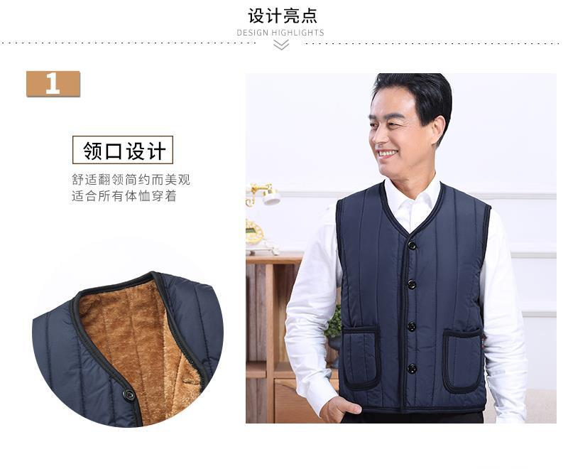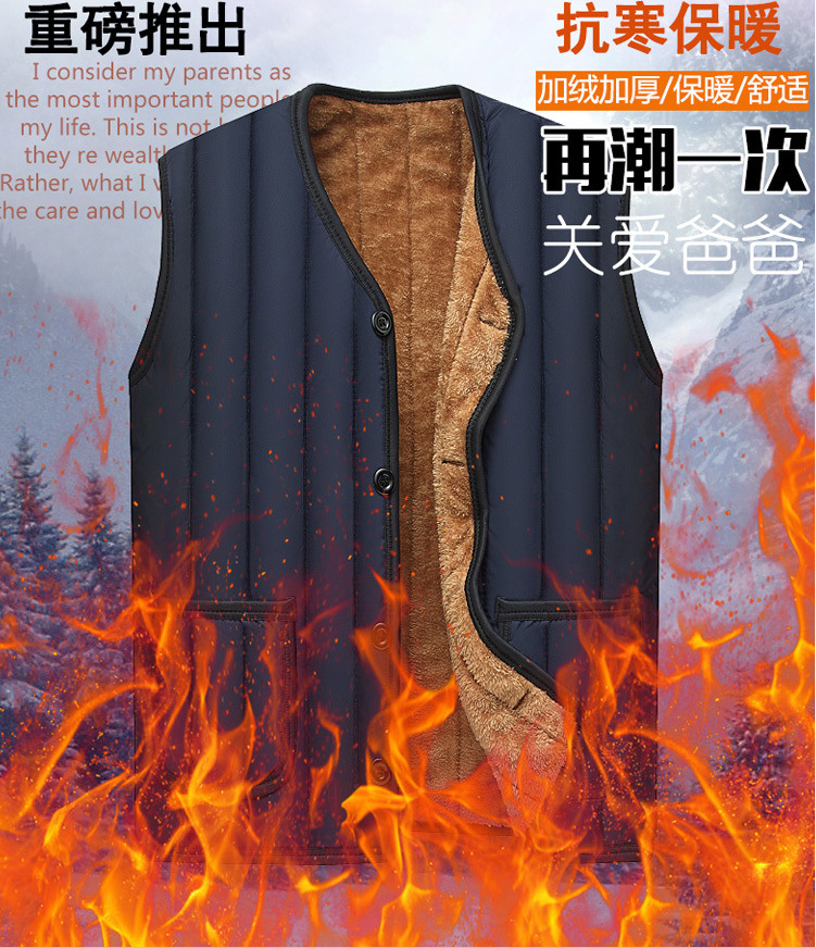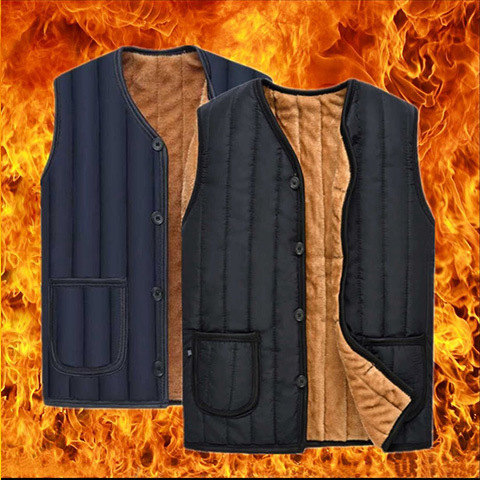 Chaleco de mediana edad y ancianos Chaleco de invierno de los hombres forrado de lana engrosada Chaleco de algodón cálido papá desgaste Chaleco de los hombres más el Tamaño 60