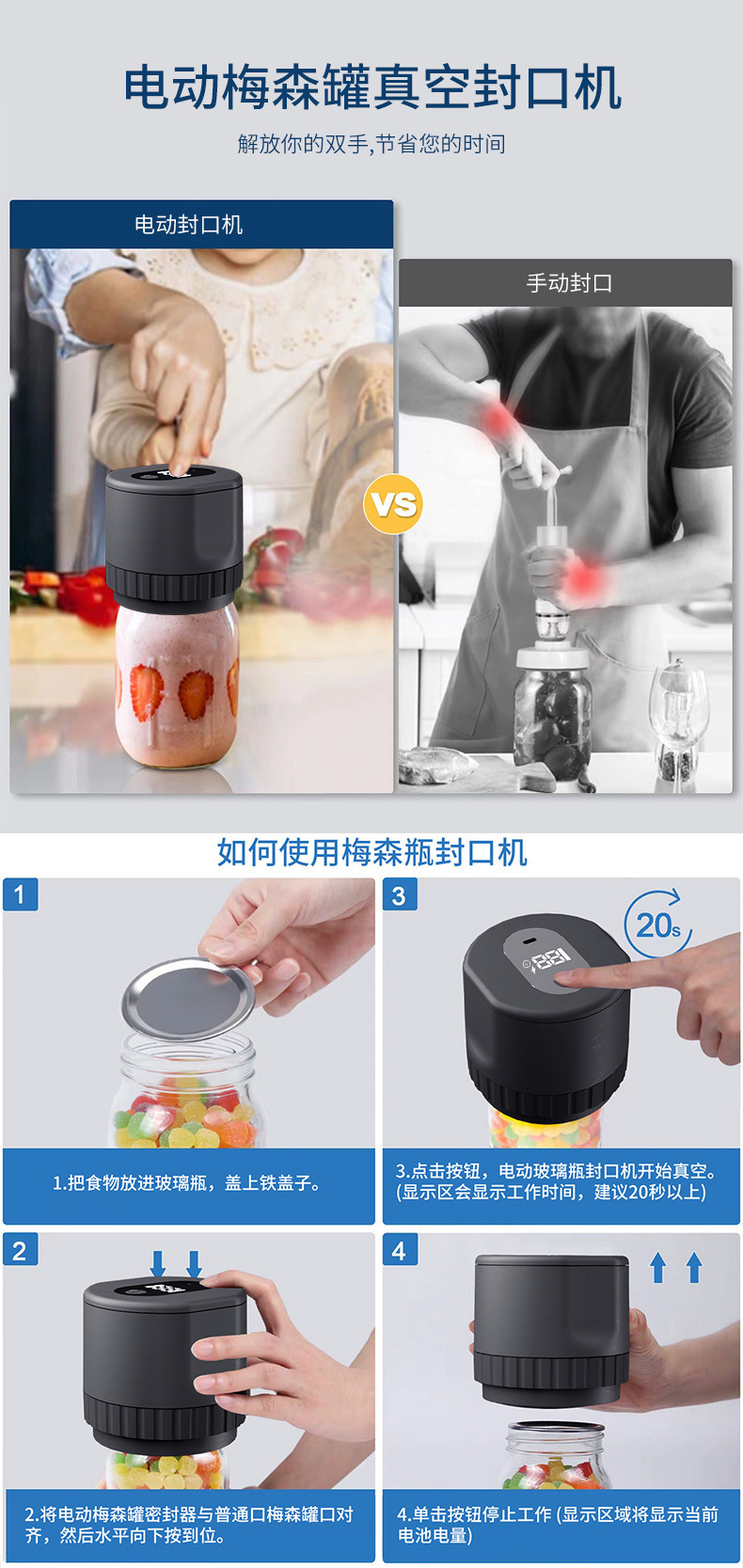 Máquina selladora de tarros de cristal, máquina selladora eléctrica, máquina de vacío para tarros de cristal, sellador de tarros de cristal, conservación al vacío.