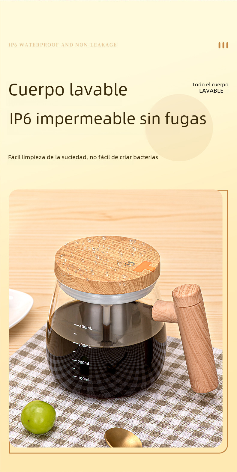 Taza de café agitadora de vidrio, elaboración automática de café instantáneo, leche de soja, tapa de taza de agua para oficina, utensilios de cocina