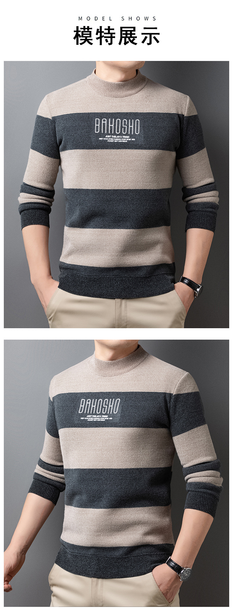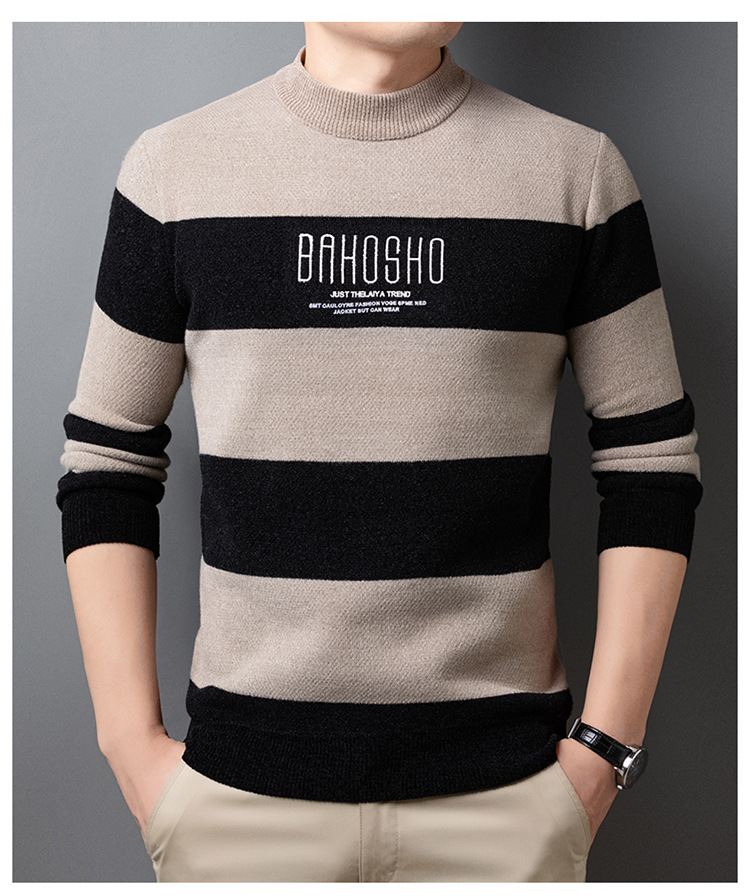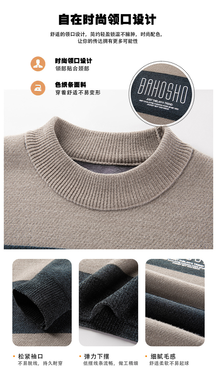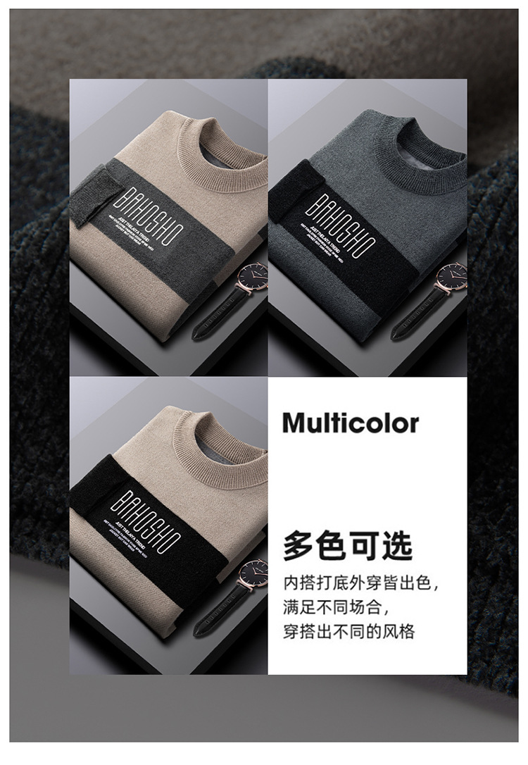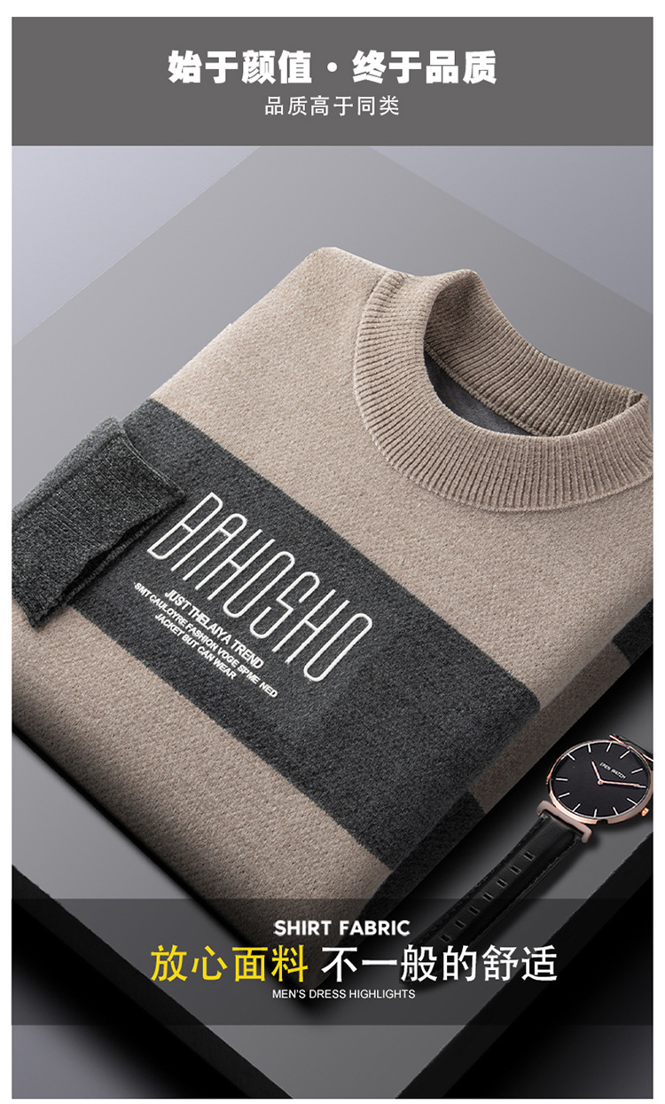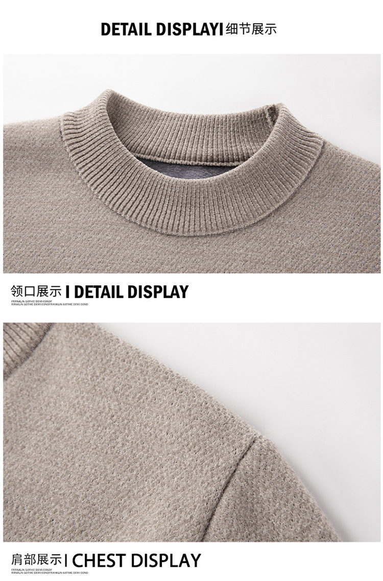 Suéter de los hombres de piel de hurón forrado de lana engrosada cuello redondo bottoming Top flojo invierno cálido suéter de los hombres al por mayor