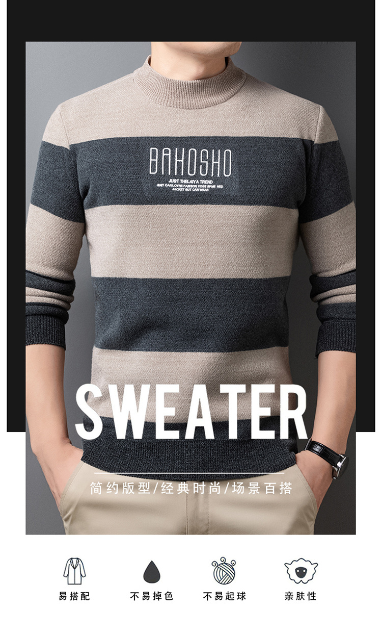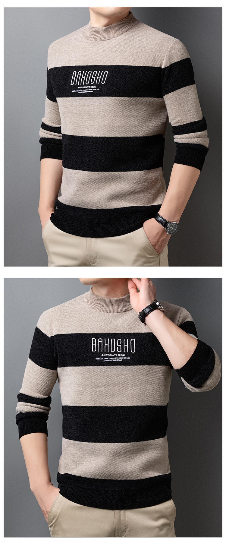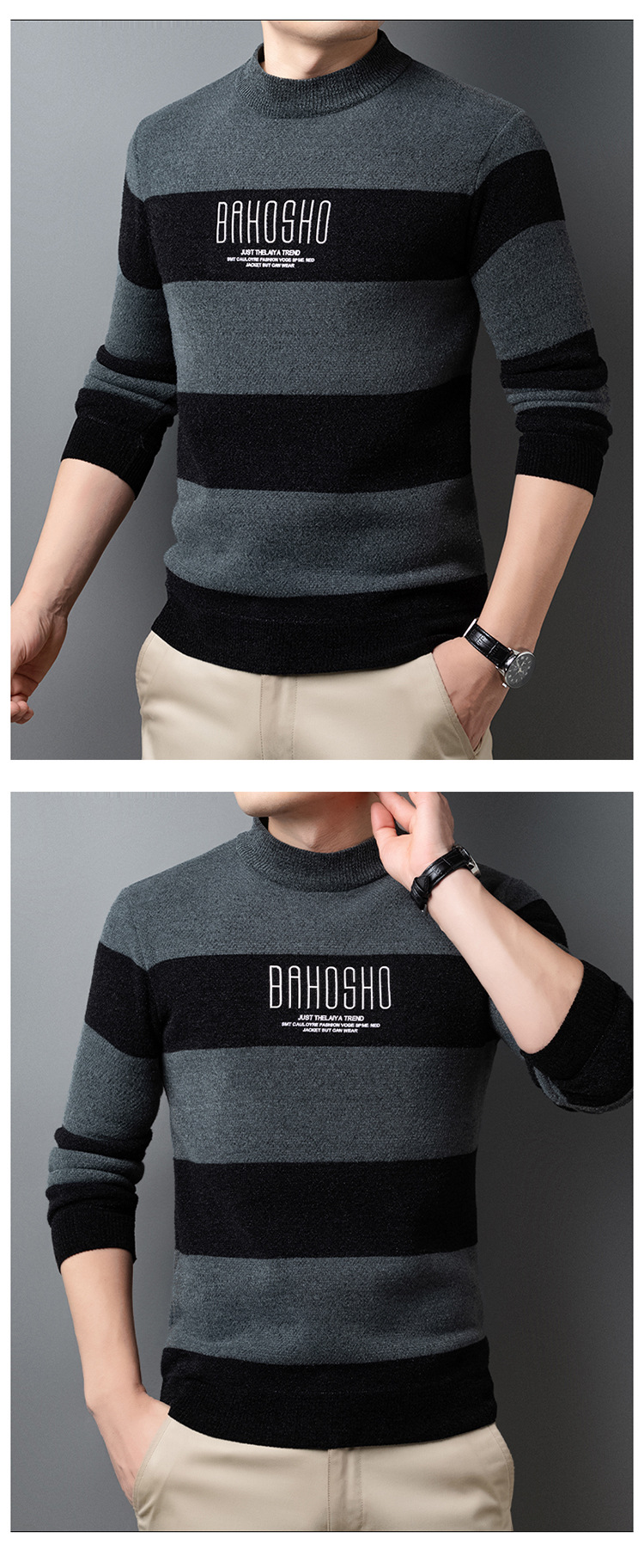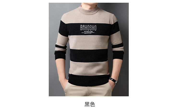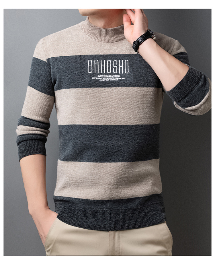 Suéter de los hombres de piel de hurón forrado de lana engrosada cuello redondo bottoming Top flojo invierno cálido suéter de los hombres al por mayor