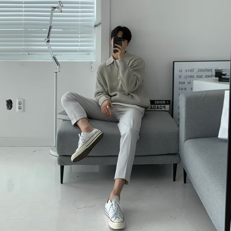 Cuello de Polo americano suéter de color sólido de los hombres perezoso de alta calidad media cremallera suéter de fondo ropa interior casual top de los hombres