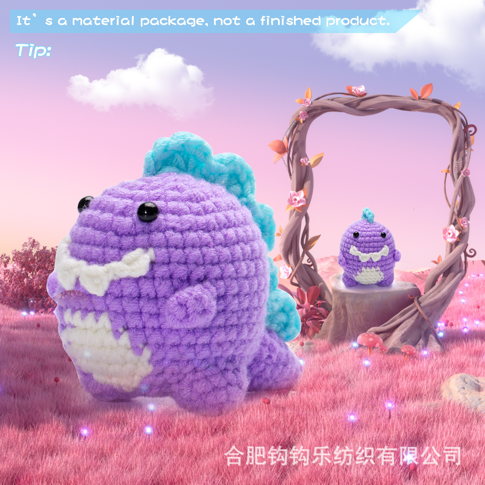 Transfronterizo nuevo paquete de material de ganchillo tejido muñeca hecha a mano DIY decoración Púrpura pequeño dinosaurio novato enseñanza Inglés