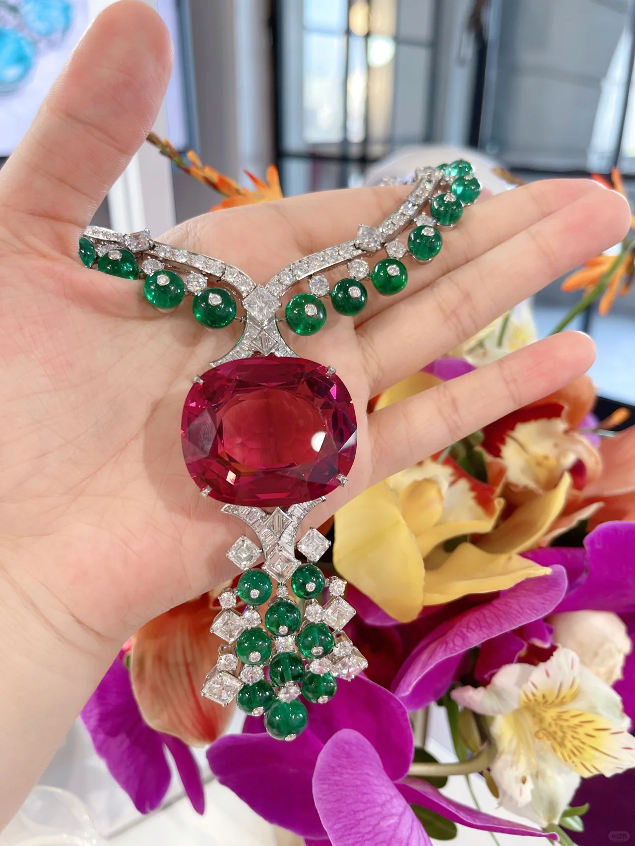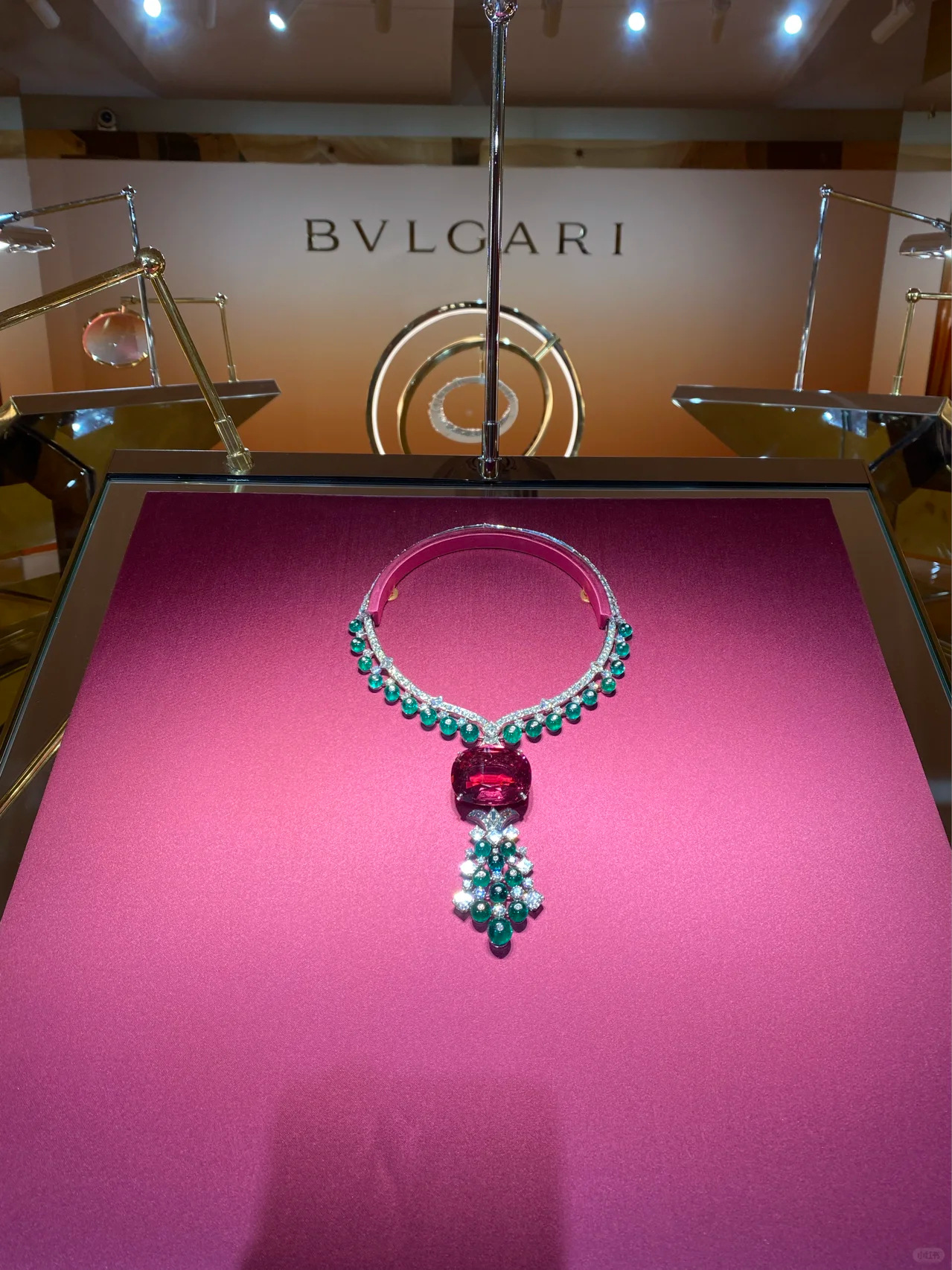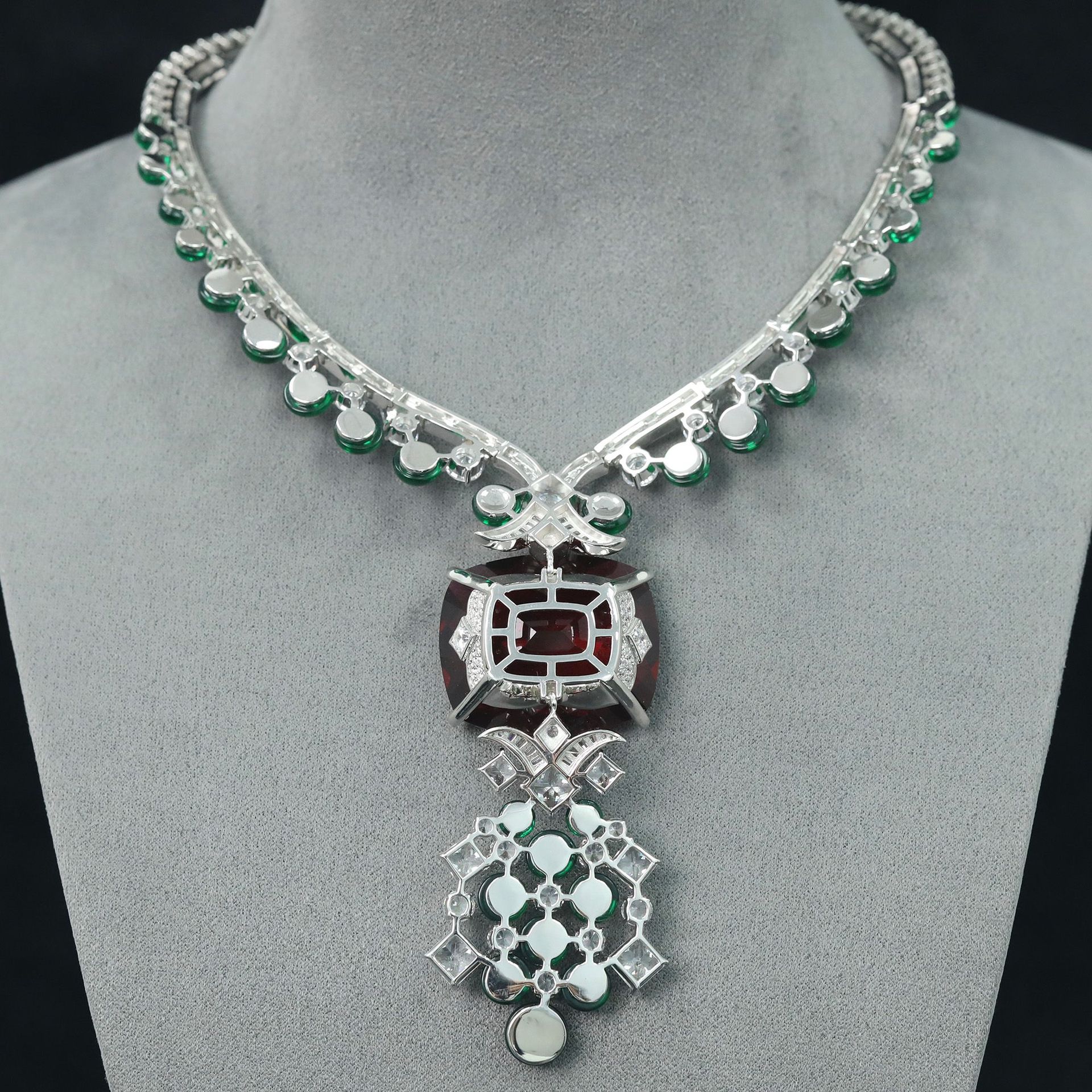 Collar de plata 925 chapado en oro con diamantes de alto contenido de carbono, turmalina rubelita y joyería de alta gama para mujer.
