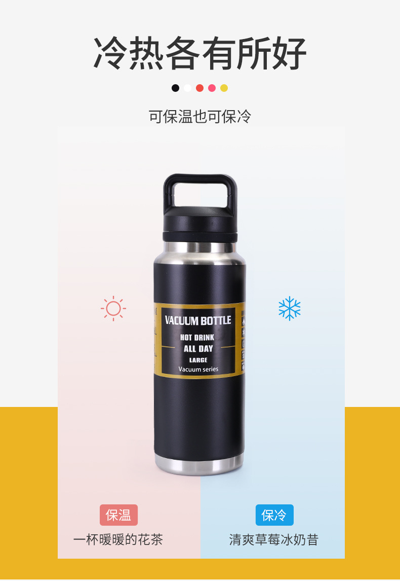 Vaso Aislado Estilo Yeti, Gran Capacidad, Acero Inoxidable 304, Botella de Agua Deportiva Portátil, Apta para Ciclismo y Senderismo al Aire Libre.