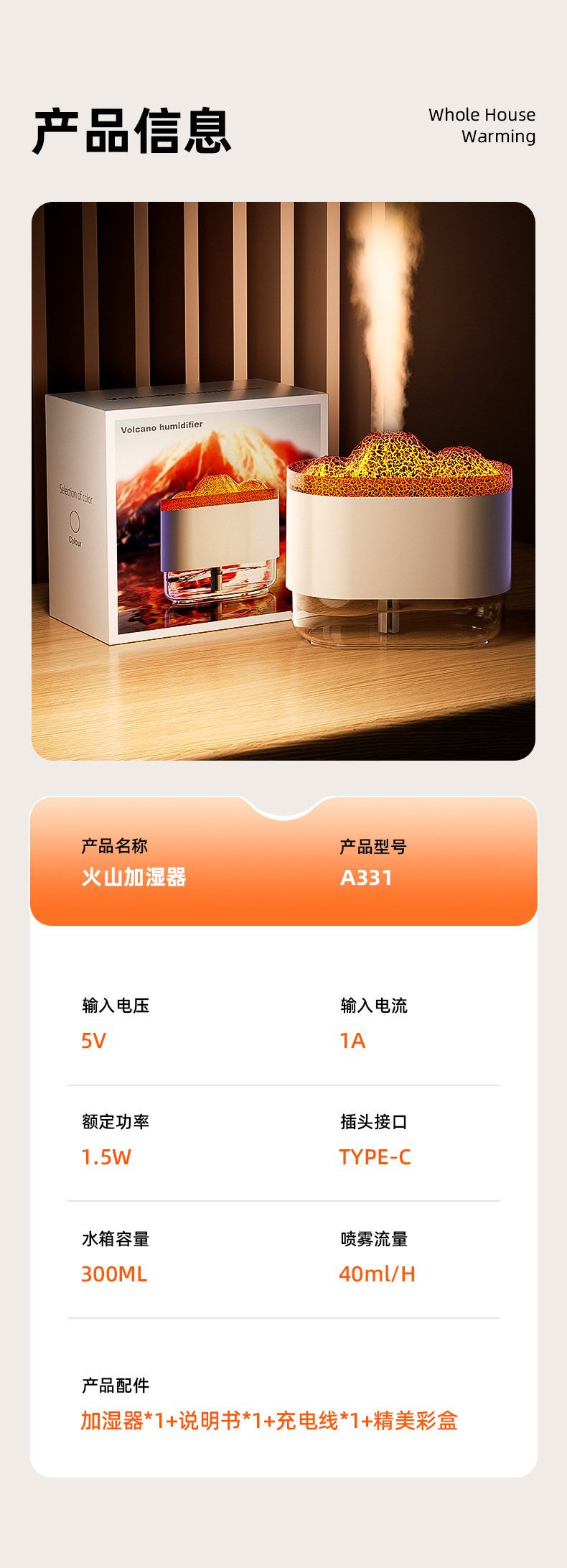 Simulación volcán humidificador USB hogar atmósfera lámpara humidificador coche máquina de aromaterapia Comercio exterior nuevo gran pulverizador