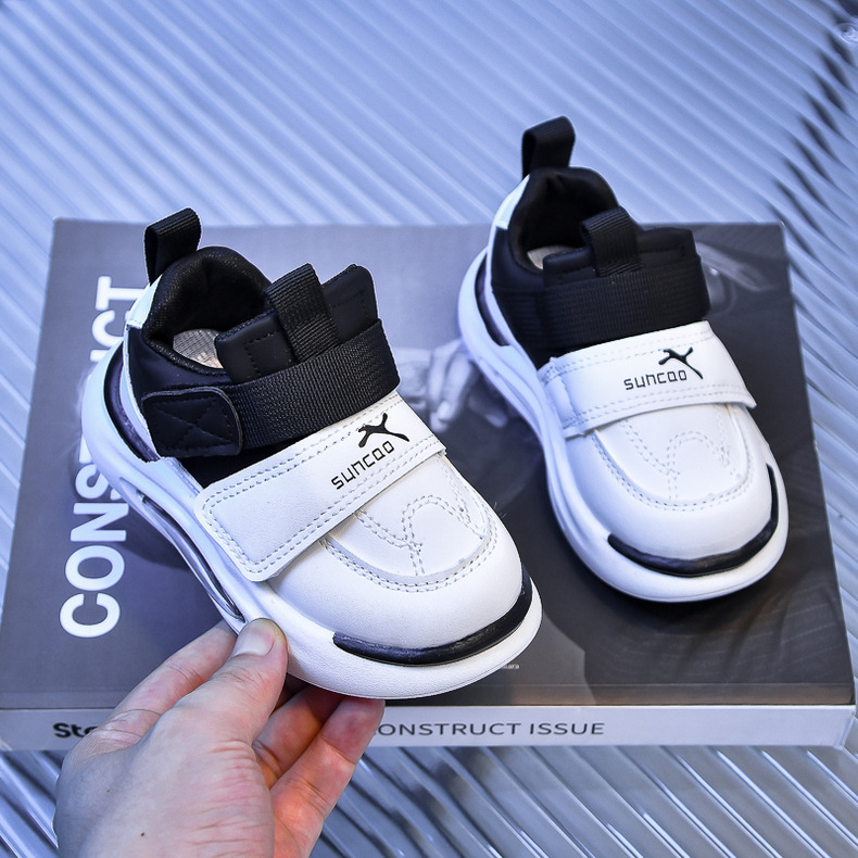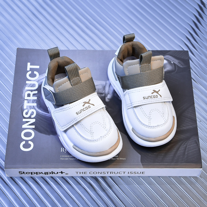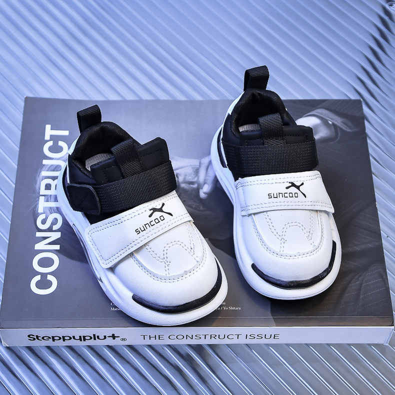 Zapatillas de plataforma para niños y niñas 2024 primavera y otoño nuevos zapatos deportivos para niños zapatos deportivos de cuero de fondo suave para niños pequeños y medianos marea