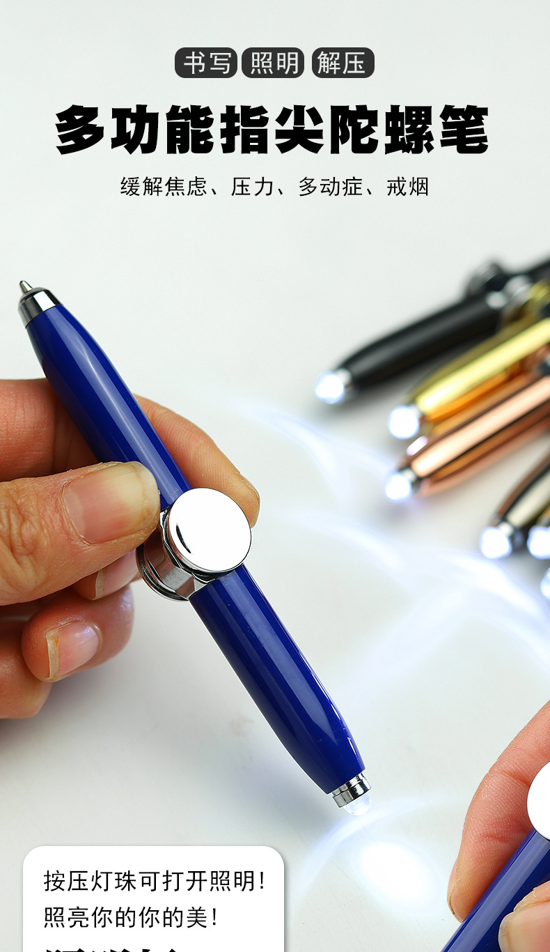 Bolígrafo Spinner para Dedo, Giratorio, con Luz, Anti estrés