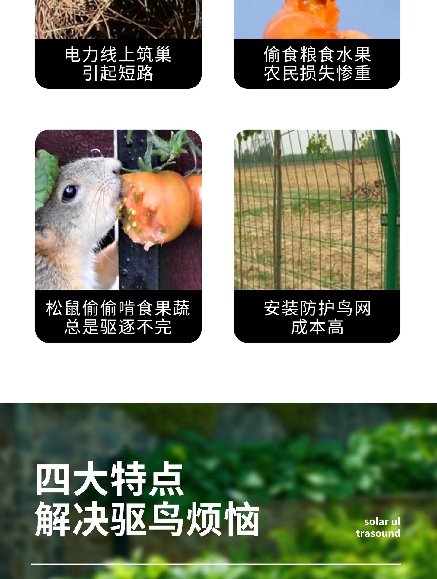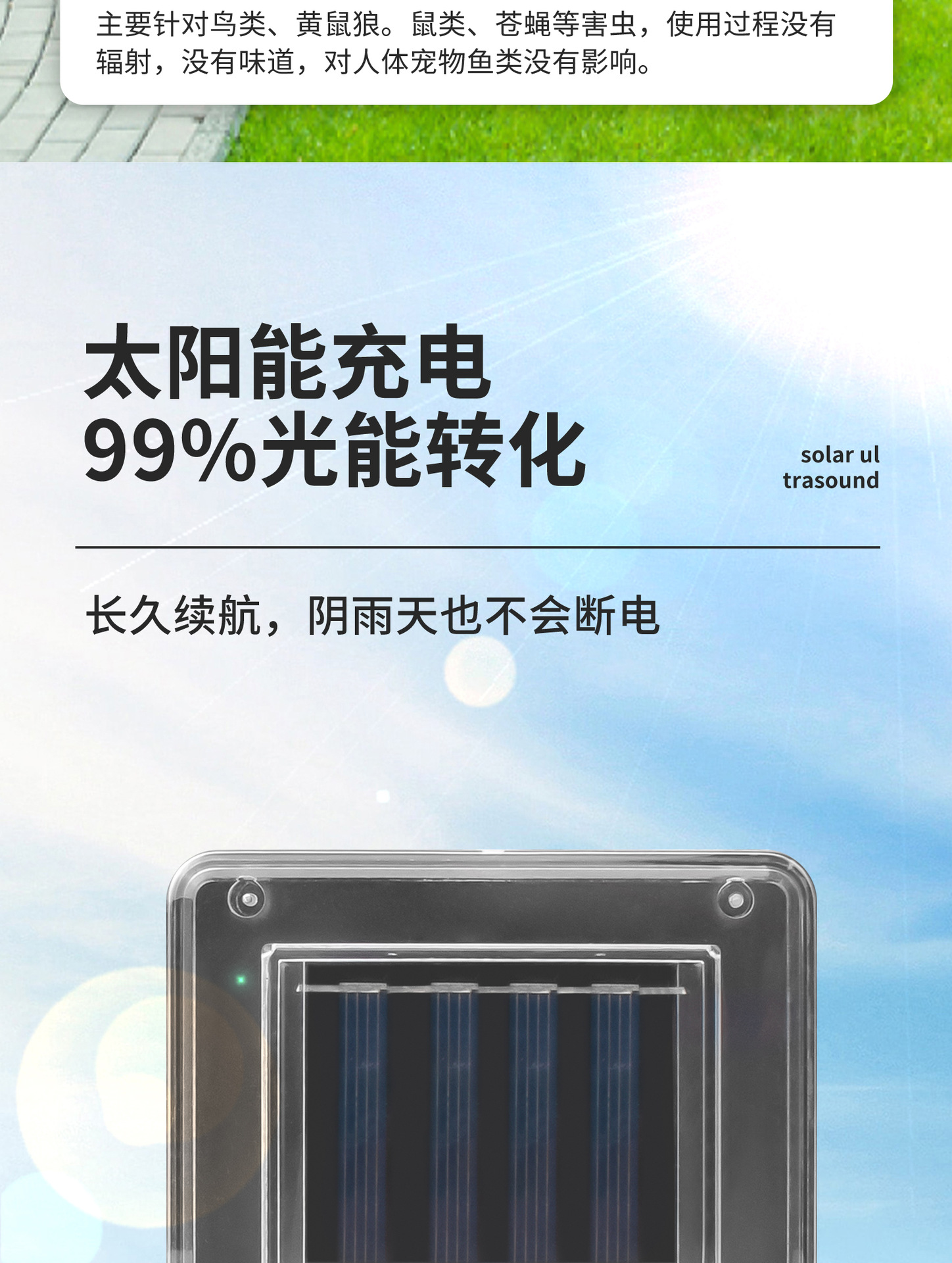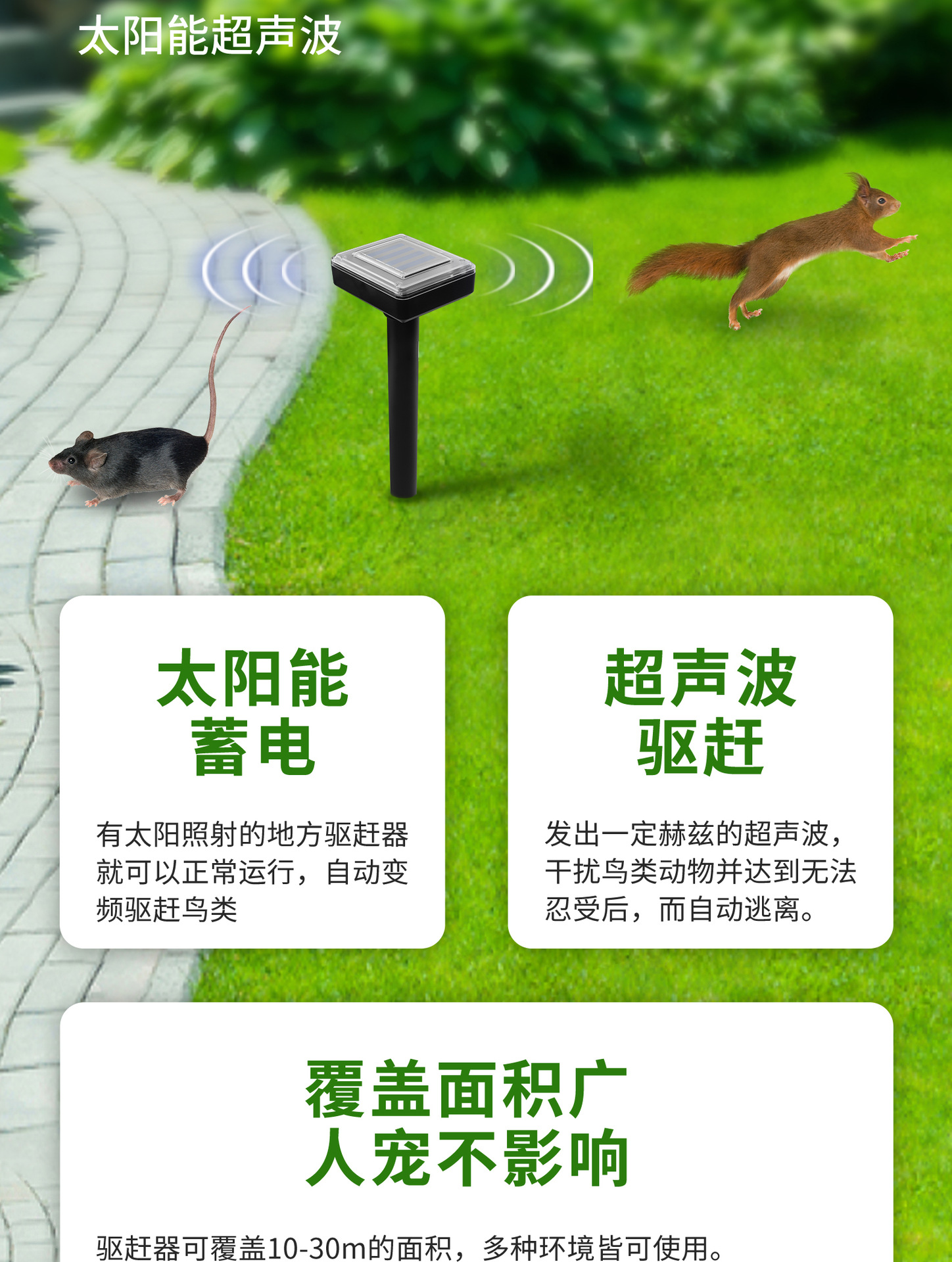Solar ratón repelente al aire libre animal repelente ultrasónico de alta potencia serpiente repelente de aves gato repelente perro repelente
