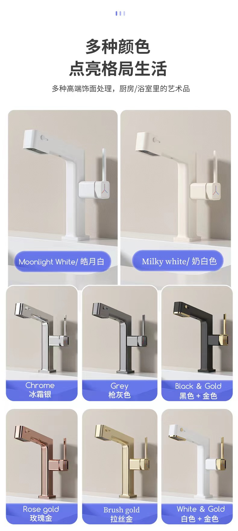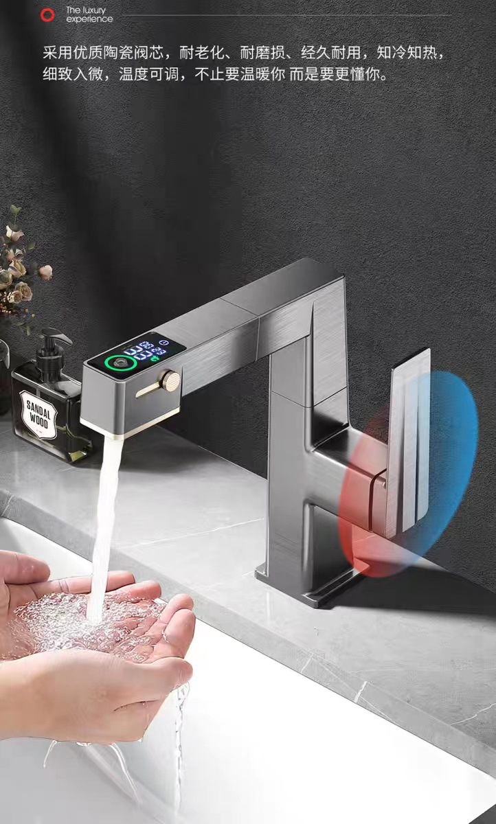 Grifo de lavabo con pantalla digital, giratorio 720 grados, extraíble, para baño, con agua fría y caliente, de doble uso.
