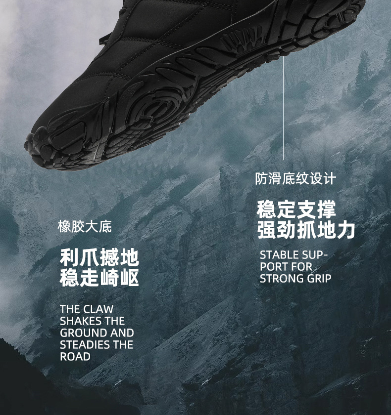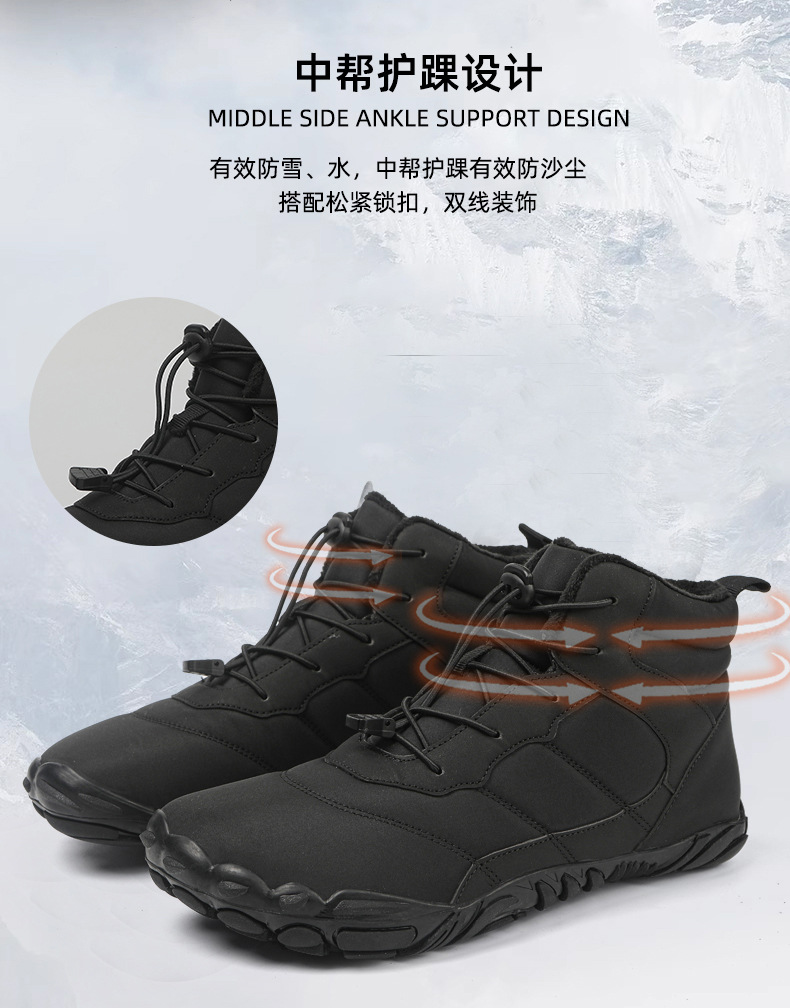 Zapatos de cinco dedos transfronterizos botas de nieve antideslizantes zapatos de nieve al aire libre zapatos acolchados de algodón de aislamiento resistente al frío de los hombres y las mujeres zapatos acolchados de algodón corto