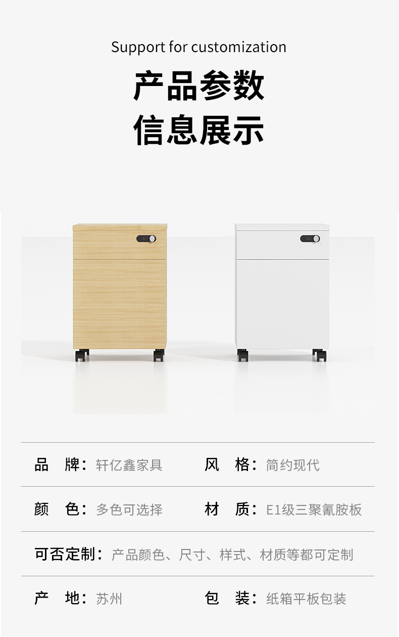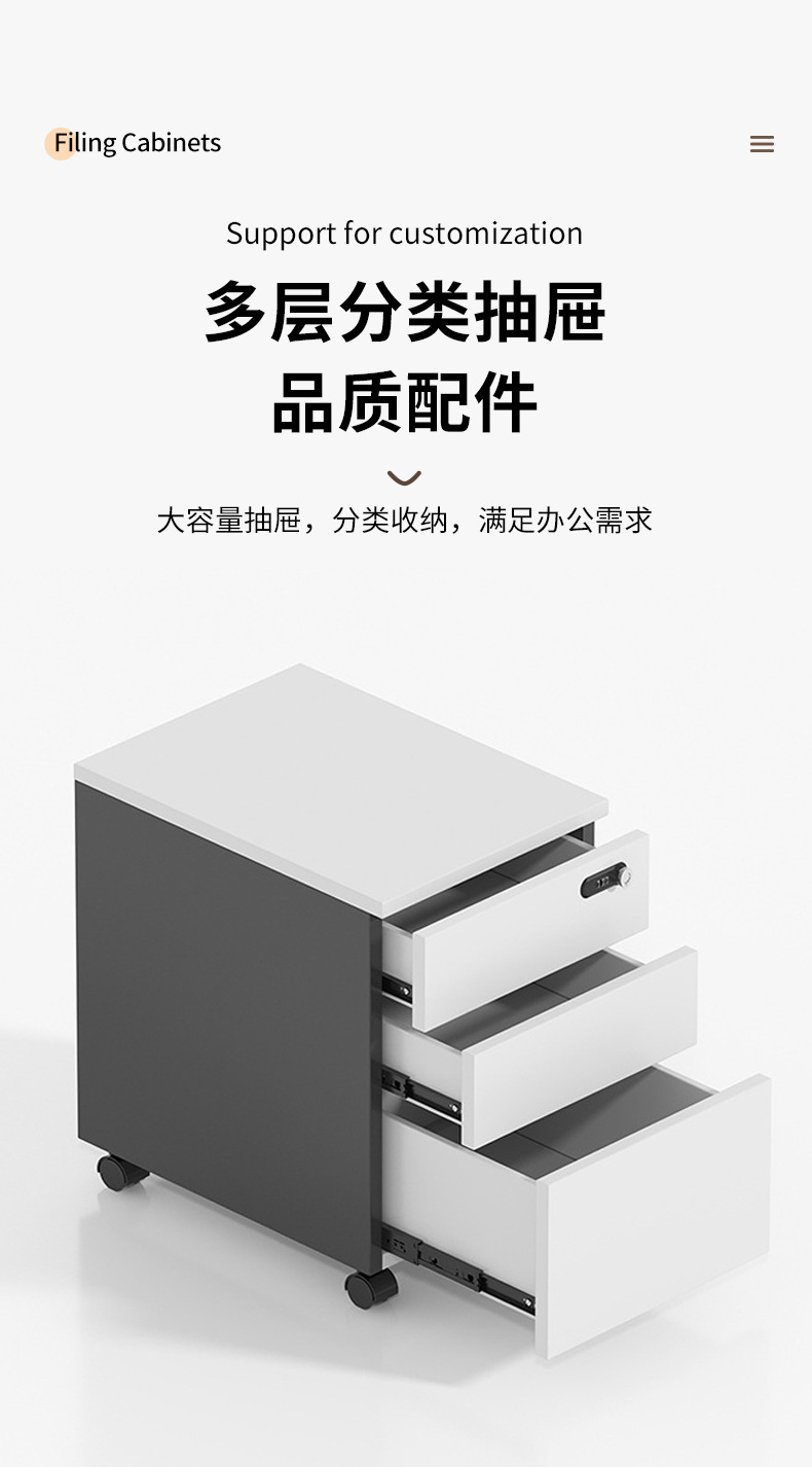 Muebles de oficina gabinete de archivo de tres cajones gabinete móvil debajo de la mesa armario de gabinete de almacenamiento de personal de gabinete bajo con cerradura