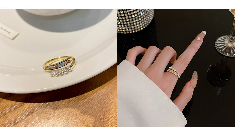 Anillo de perlas de circón de alta gama de lujo ligero coreano, diseño de nicho retro femenino, anillo de lazo, joyería de apertura