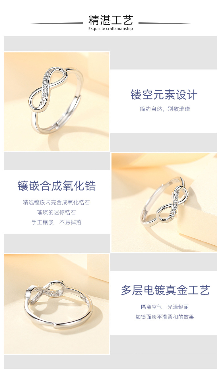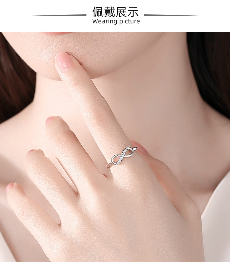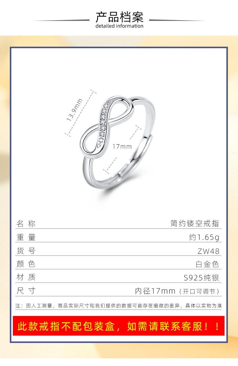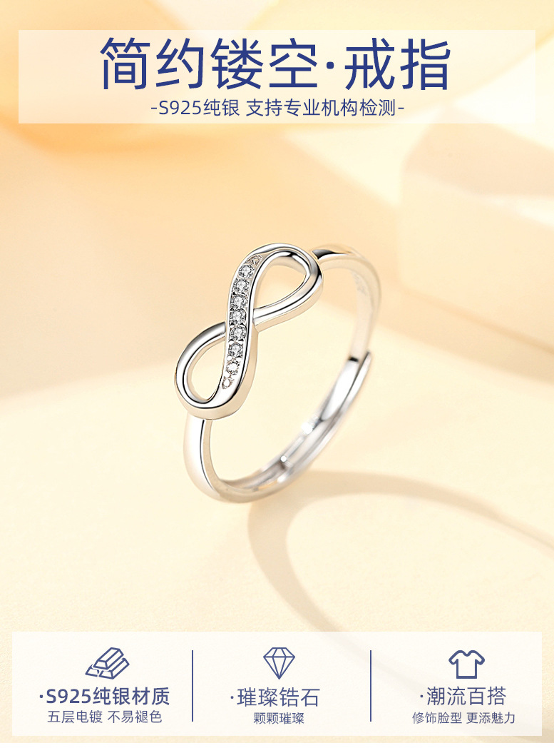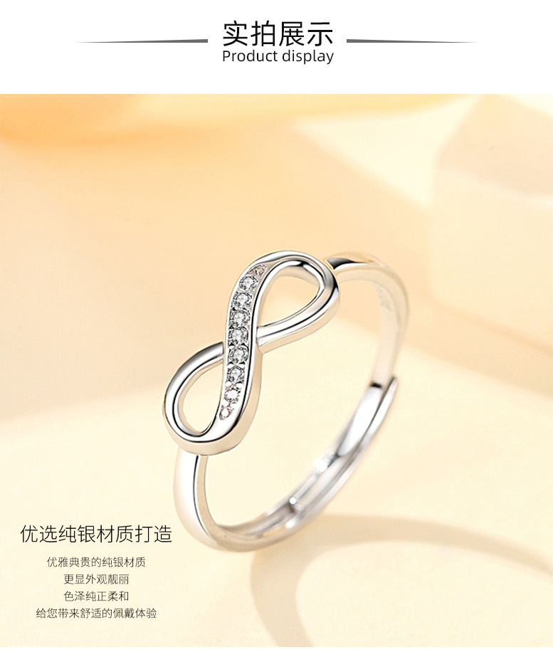 S925 plata esterlina europeo y americano popular joyería anillo 8-palabra transfronteriza anillo ajustable Chapado en platino moda anillo abierto
