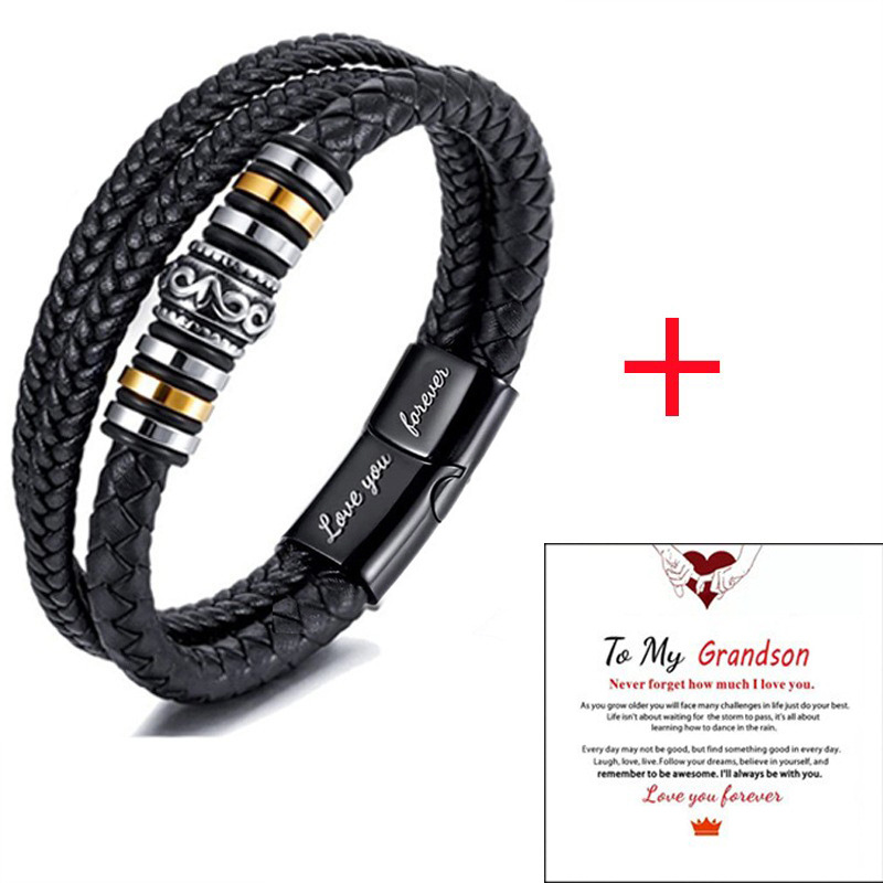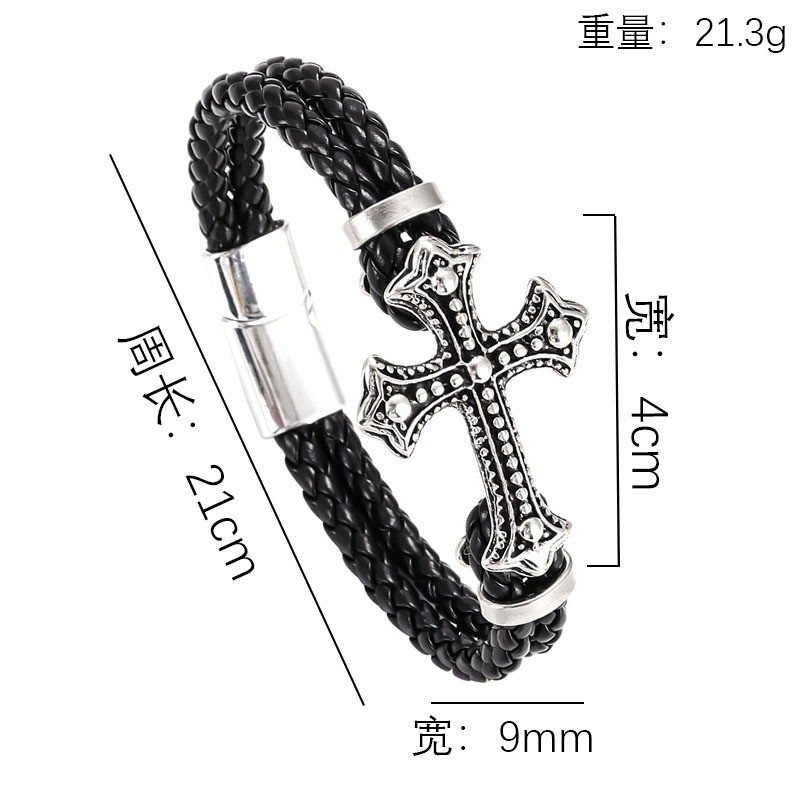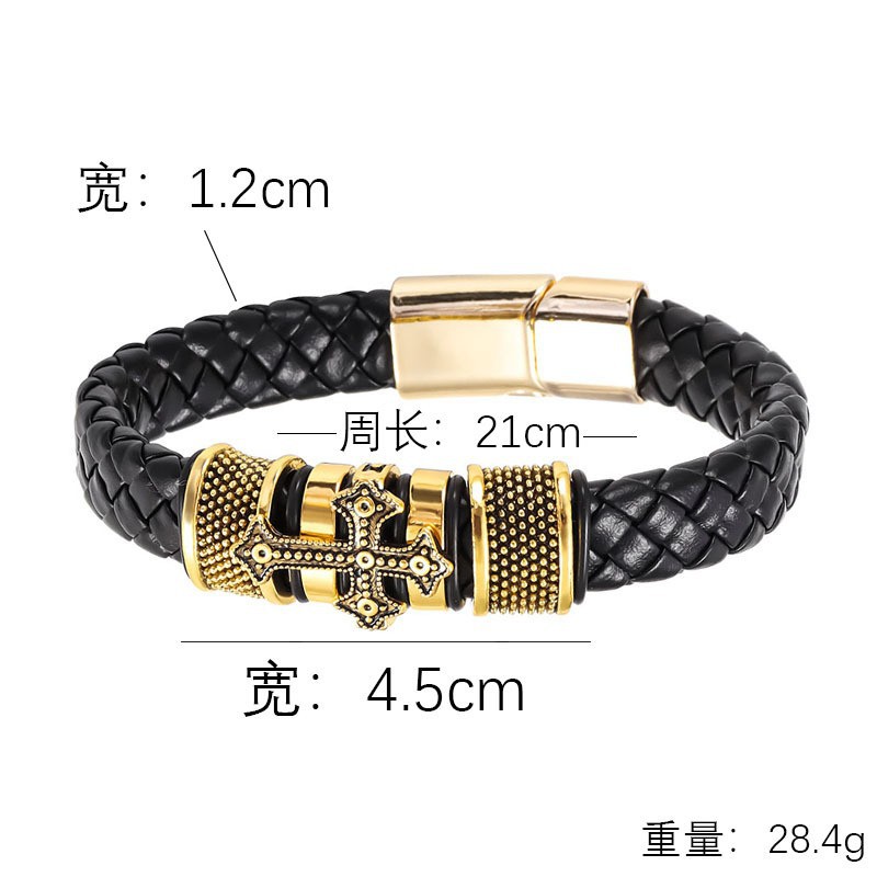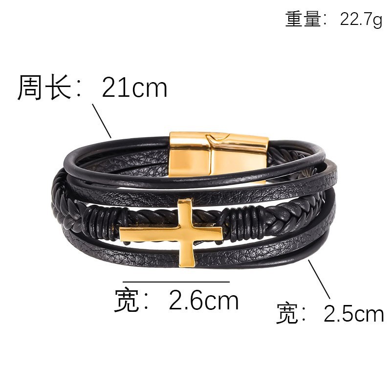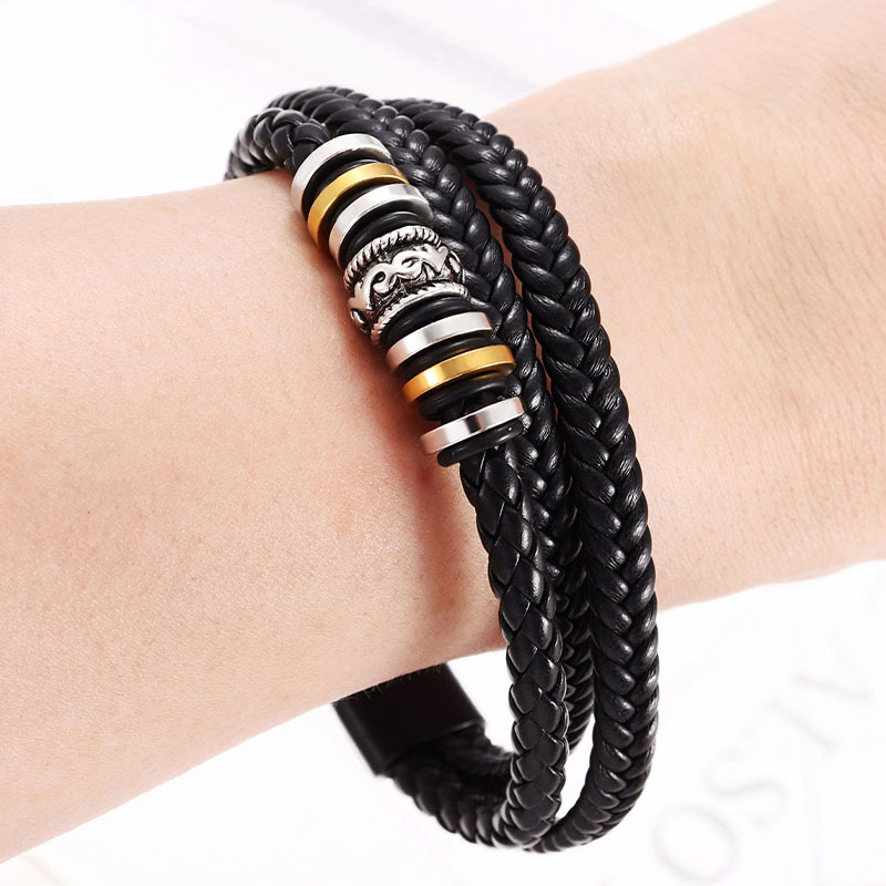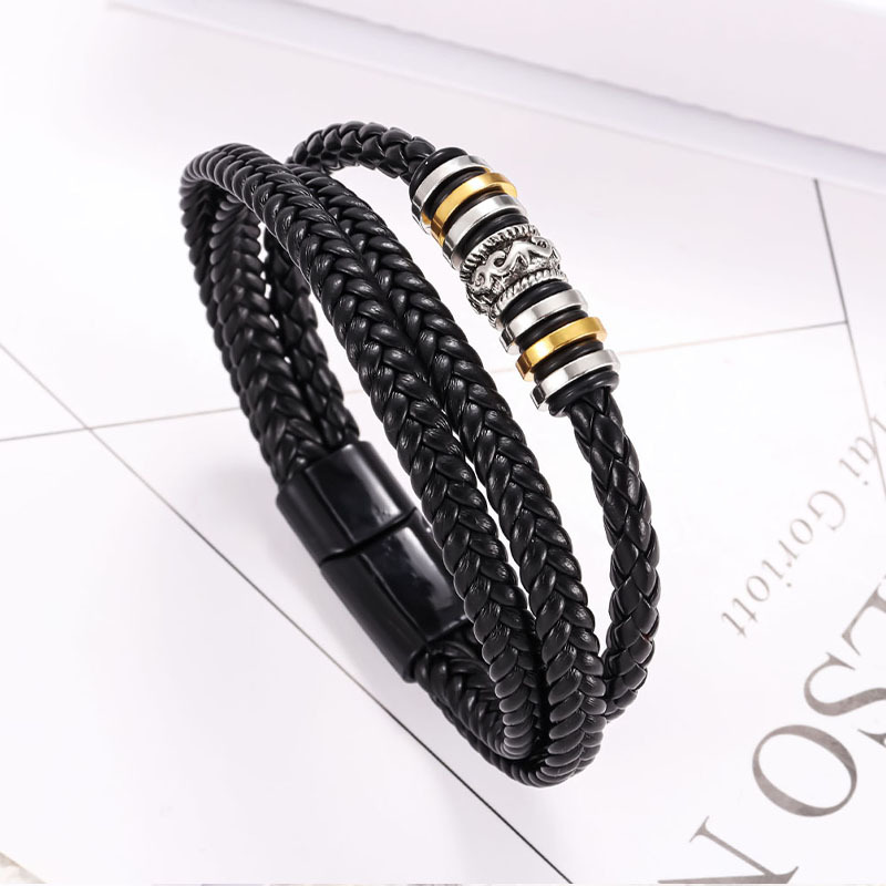Comercio exterior transfronterizo estilo étnico joyería pulsera de acero inoxidable hombres multi-capa tejida cuerda de cuero hebilla magnética pulsera al por mayor