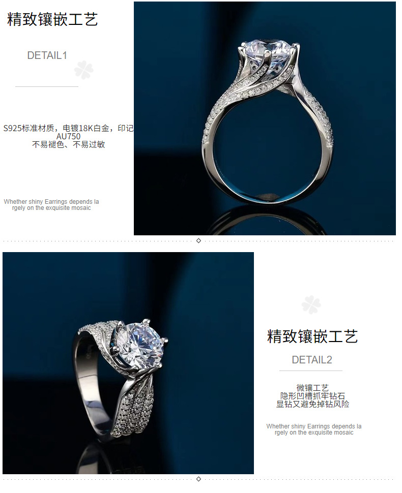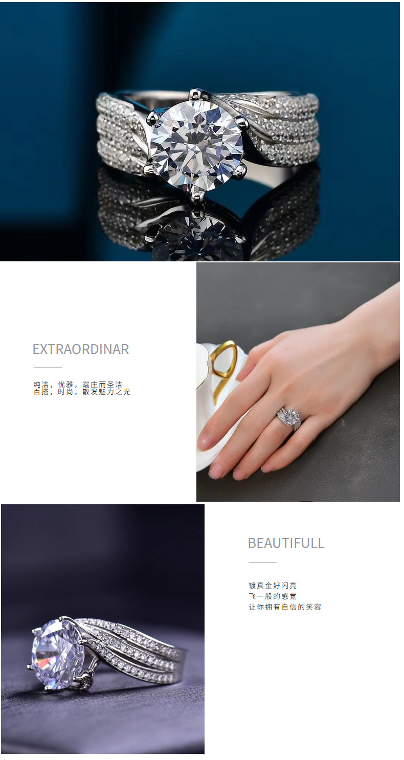 Anillo de joyería de Plata nuevo anillo de diamantes con incrustaciones de lujo D anillo de diamantes de color joyería de plata vacía S925 Plata