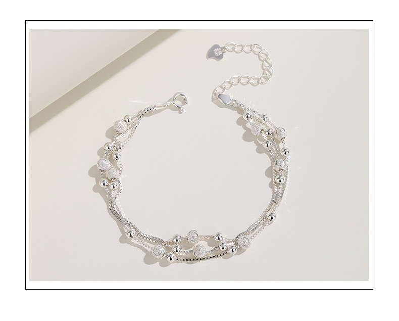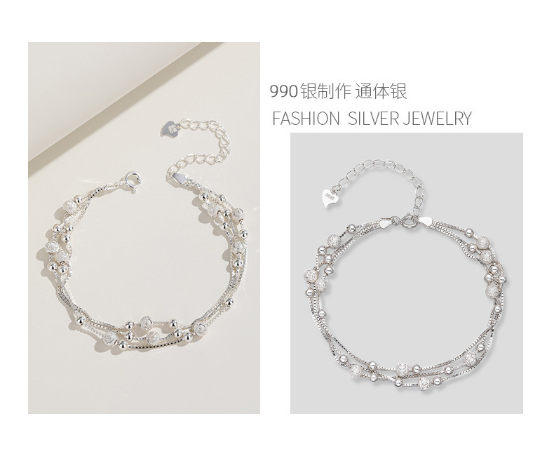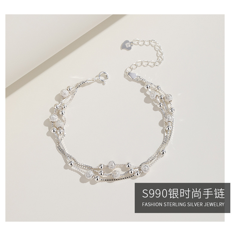 Estilo de lujo ligero Sansheng III Pulsera de plata pura S990 Joyas de plata esterlina Joyas de plata de moda femenina Regalos de cumpleaños de Navidad y Año Nuevo