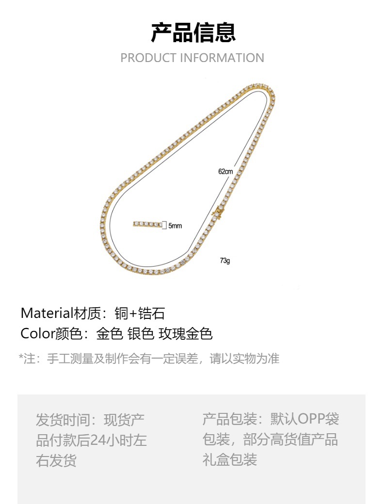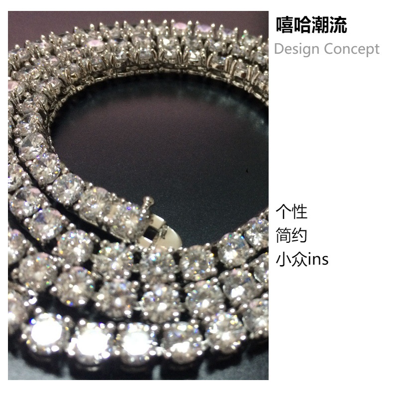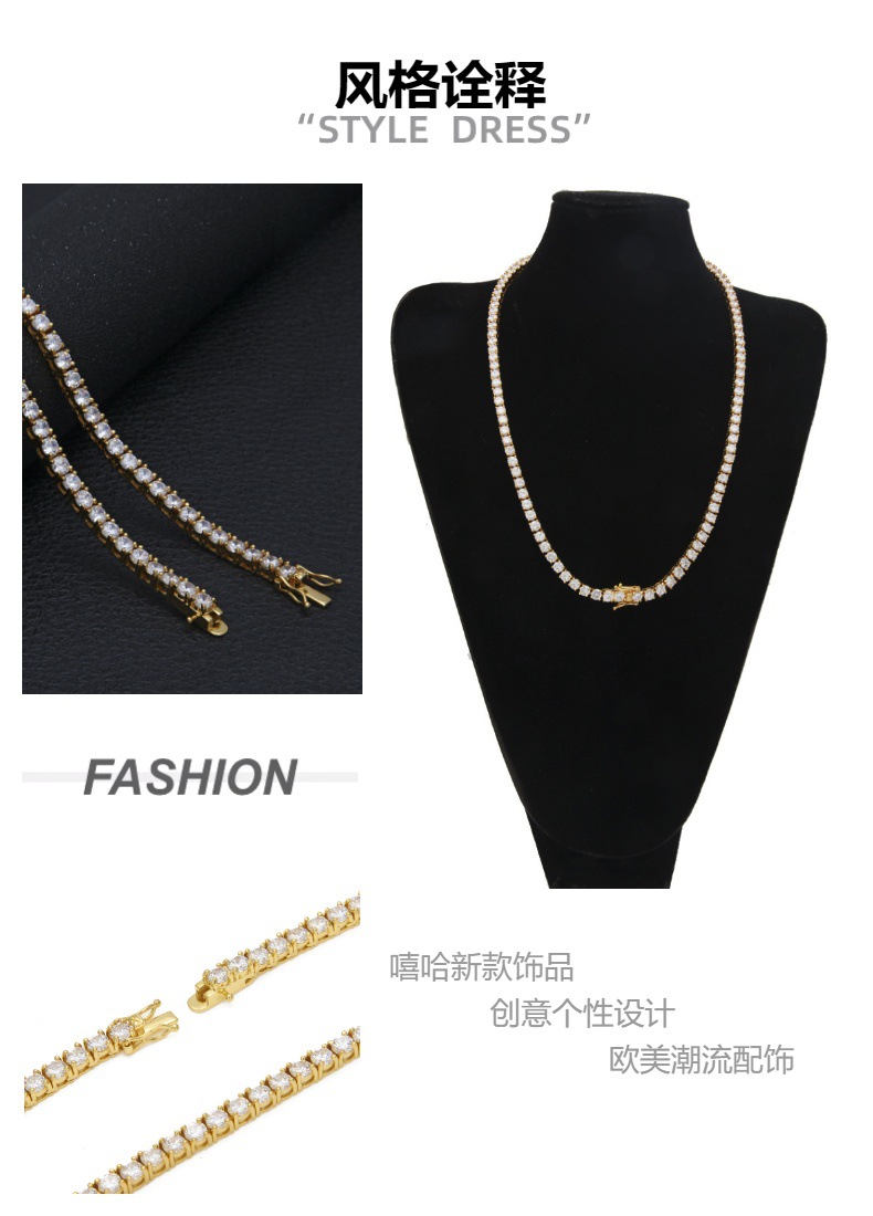 Collar de cadena de tenis de circón de personalidad europea y americana