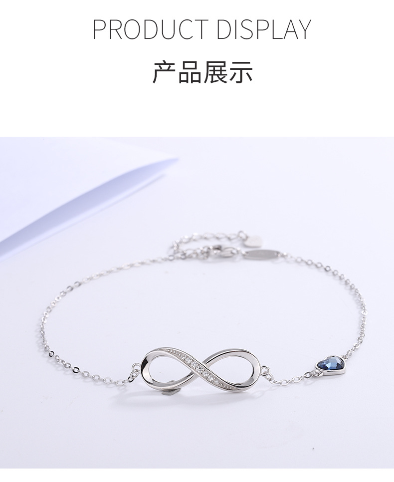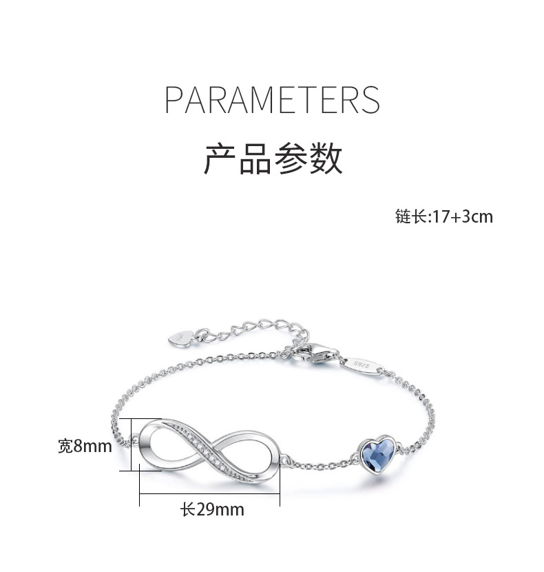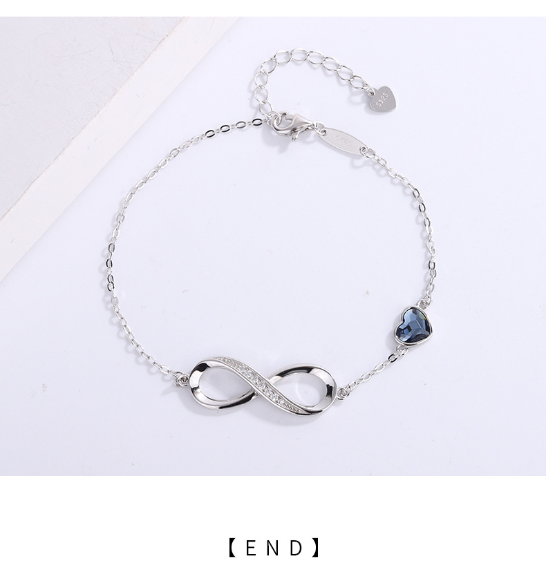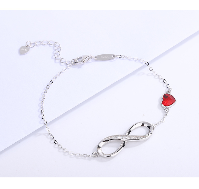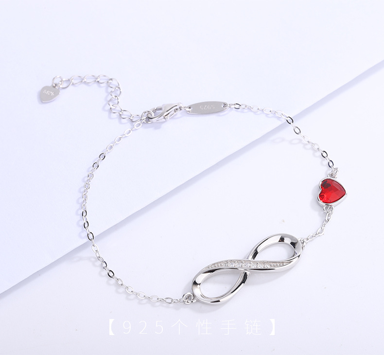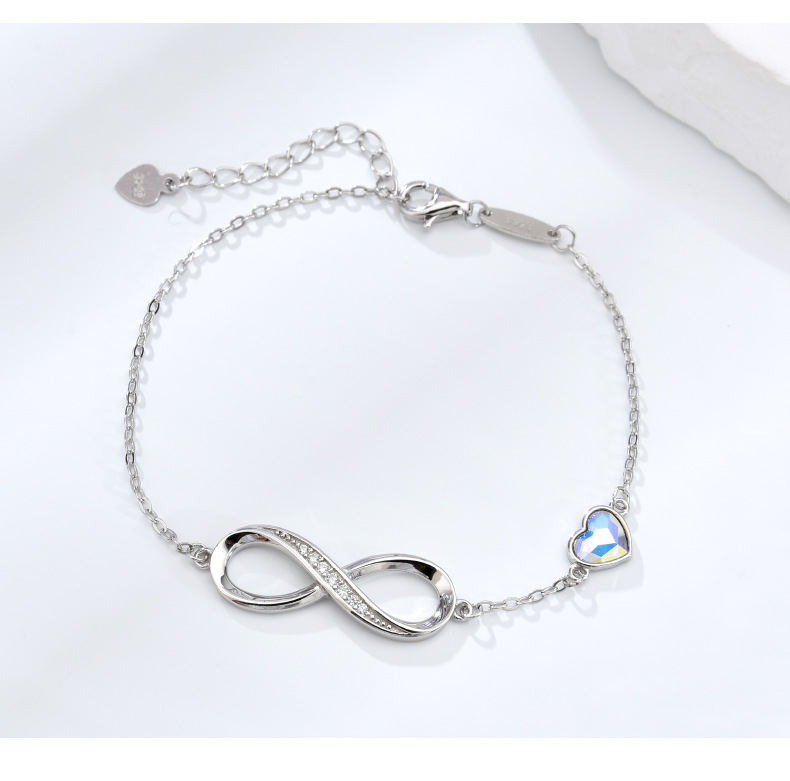 Cross-border caliente 925 plata esterlina amor europeo y americano viento infinito pulsera en forma de corazón cristal piedra mano joyería fuente fabricantes en stock