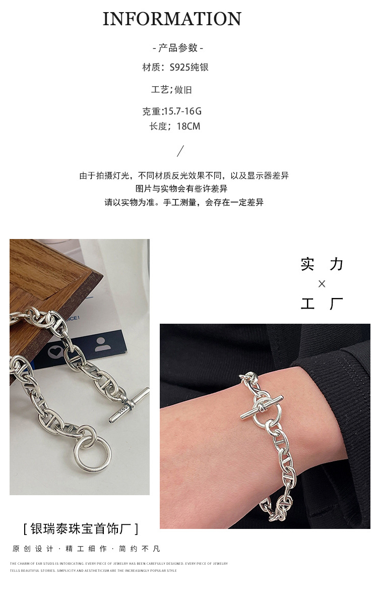 Estilo coreano s925 plata esterlina otbuckle pulsera 2022 primavera y verano nuevo nicho diseño personalizado retro industria pesada pulsera