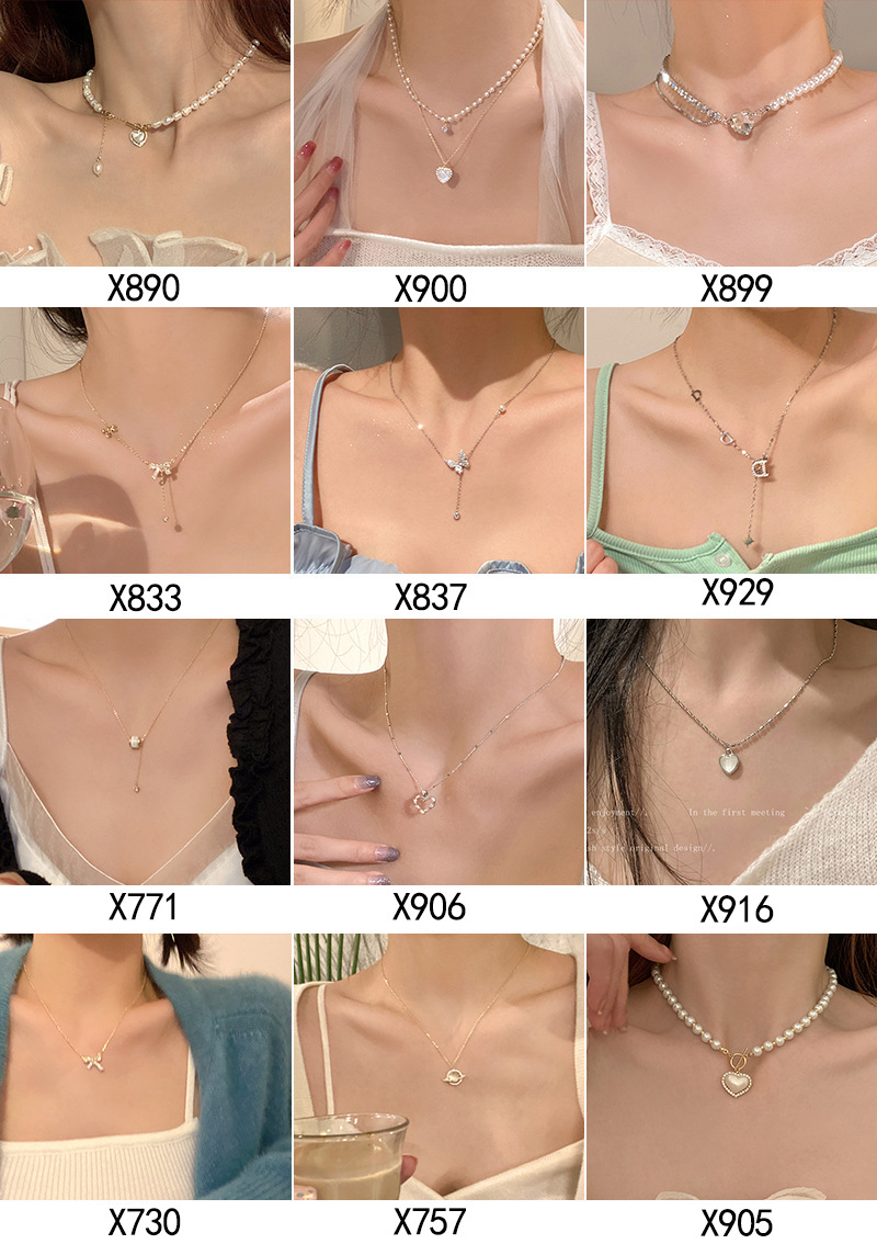 INS estilo collar de perlas de las mujeres del todo fósforo diseño de nicho de alto grado de luz de lujo Cadena de clavícula amor colgante de joyería al por mayor
