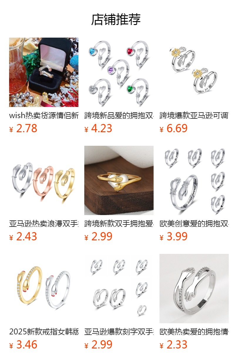 Europeo y americano creativo amor abrazo manos anillo de diamantes letras de las mujeres apertura anillo ajustable regalo de corazón