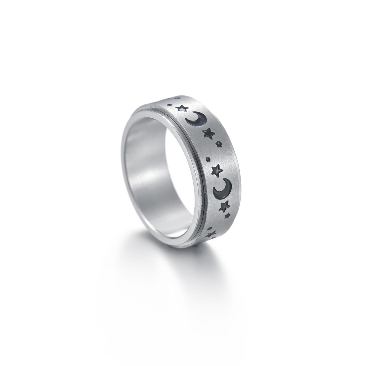 Transfronterizo de acero de titanio sol, luna, estrellas, tiempo para transferir anillo giratorio moda descompresión joyería de acero inoxidable