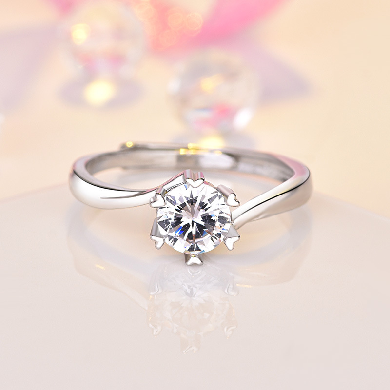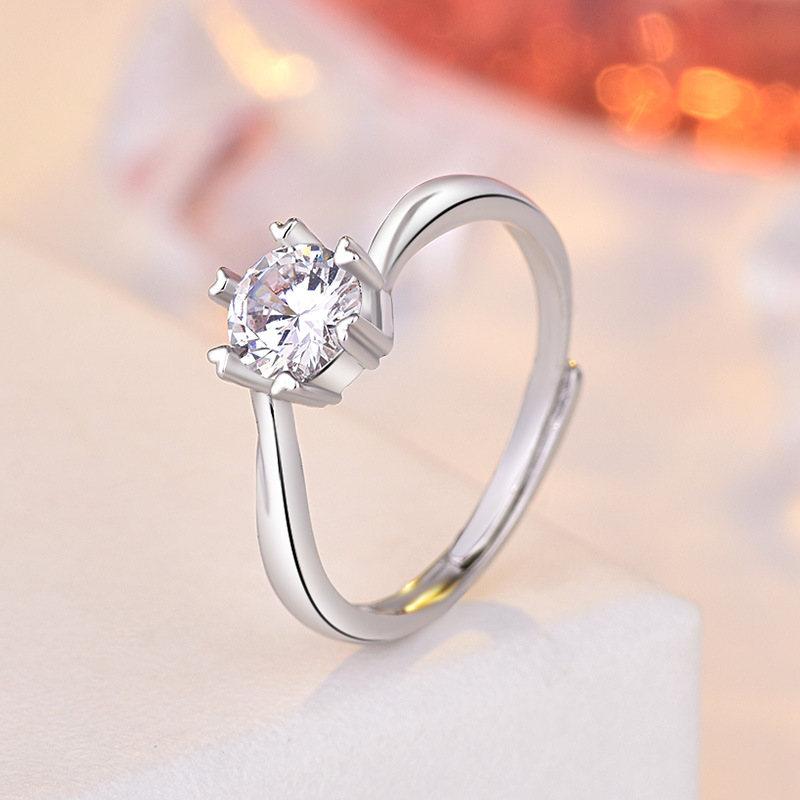 Joyería de estilo japonés y coreano anillo femenino en forma de corazón elegante anillo de cola anillo de amor simple de seis garras fuente femenina fábrica al por mayor