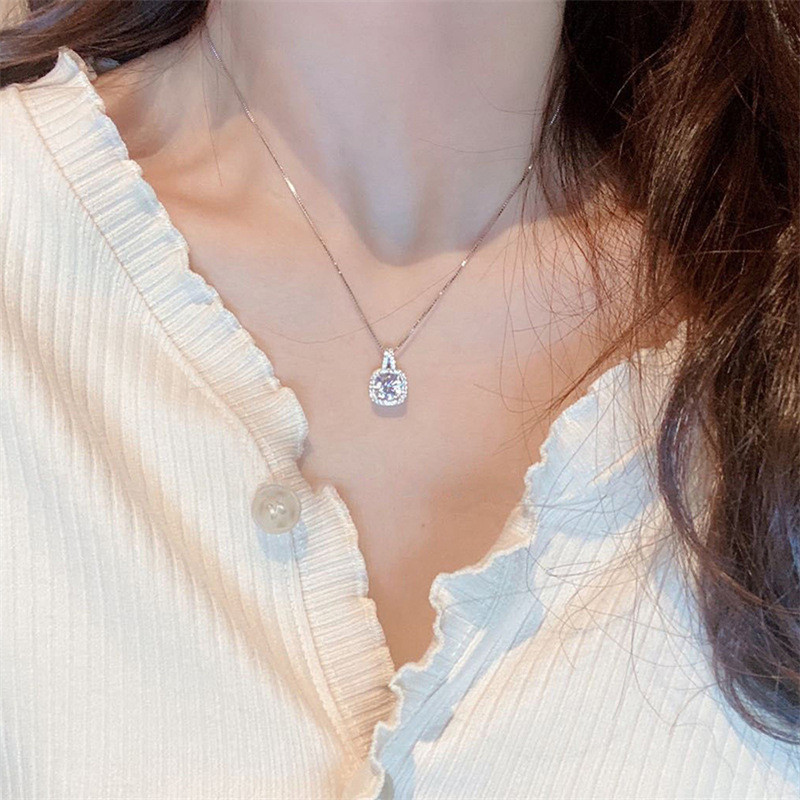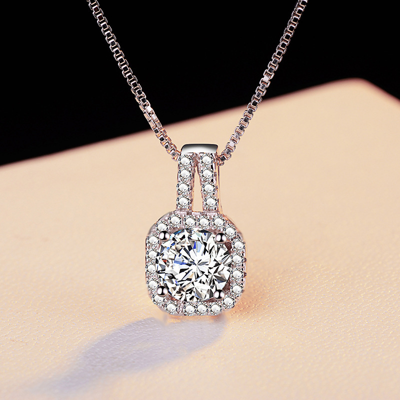 Corea del Sur Harajuku clásico simple caja de la joyería de la cadena diamante cuadrado diamante corto cristal ZIRCON clavícula cadena collar al por mayor
