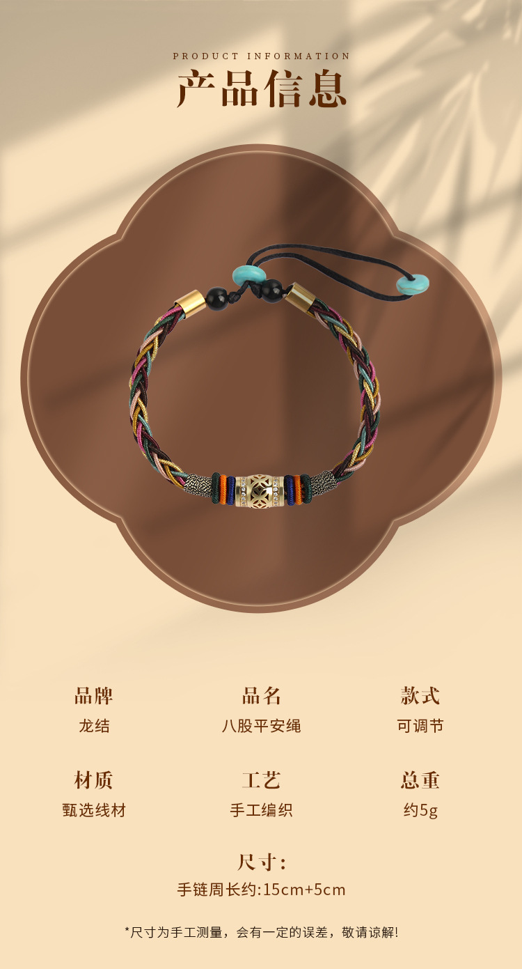 Dragón nudo pulsera tejida a mano femenina cuerda de seguridad de ocho hilos pulsera de estilo étnico pulsera S033 fábrica directa al por mayor
