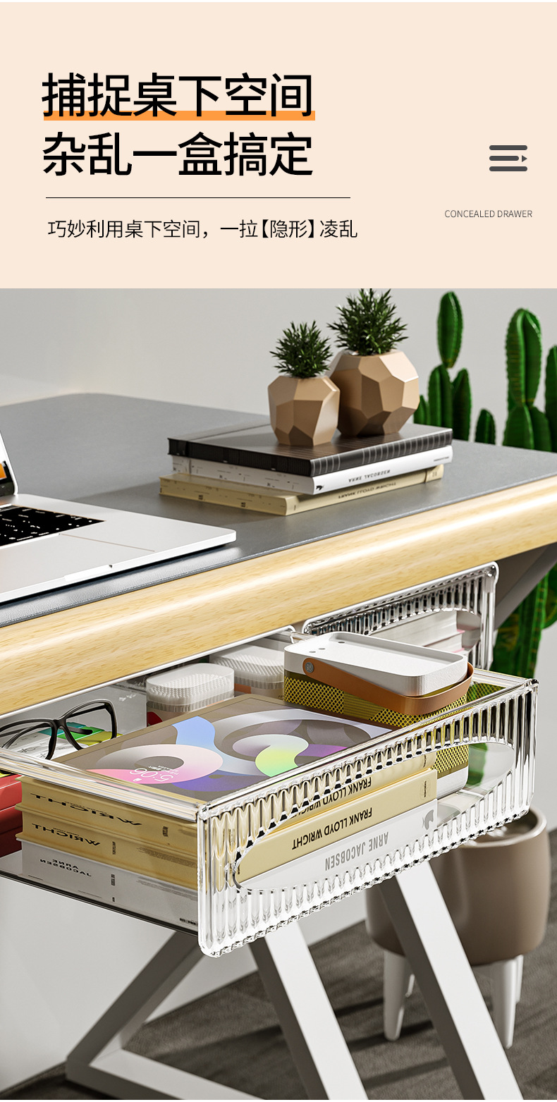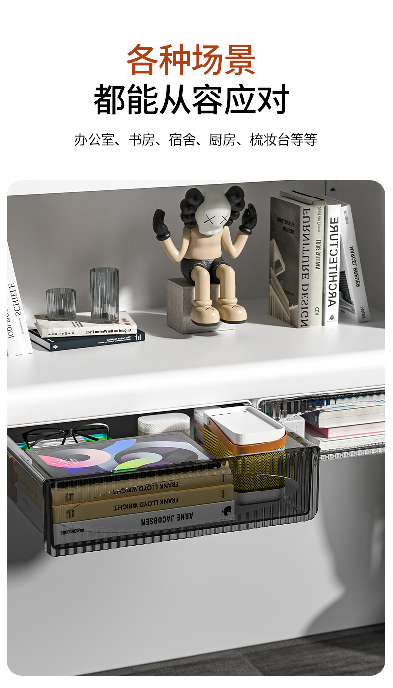 Artículos diversos de escritorio papelería de mesa almacenamiento invisible cajón sin perforar estante de almacenamiento colgante caja de almacenamiento extraíble
