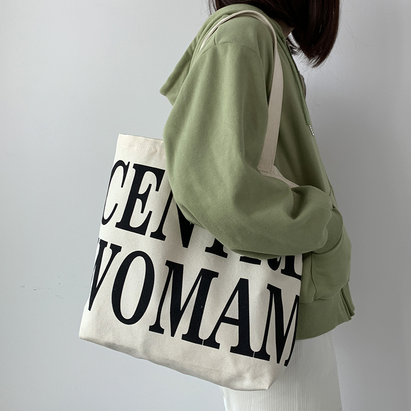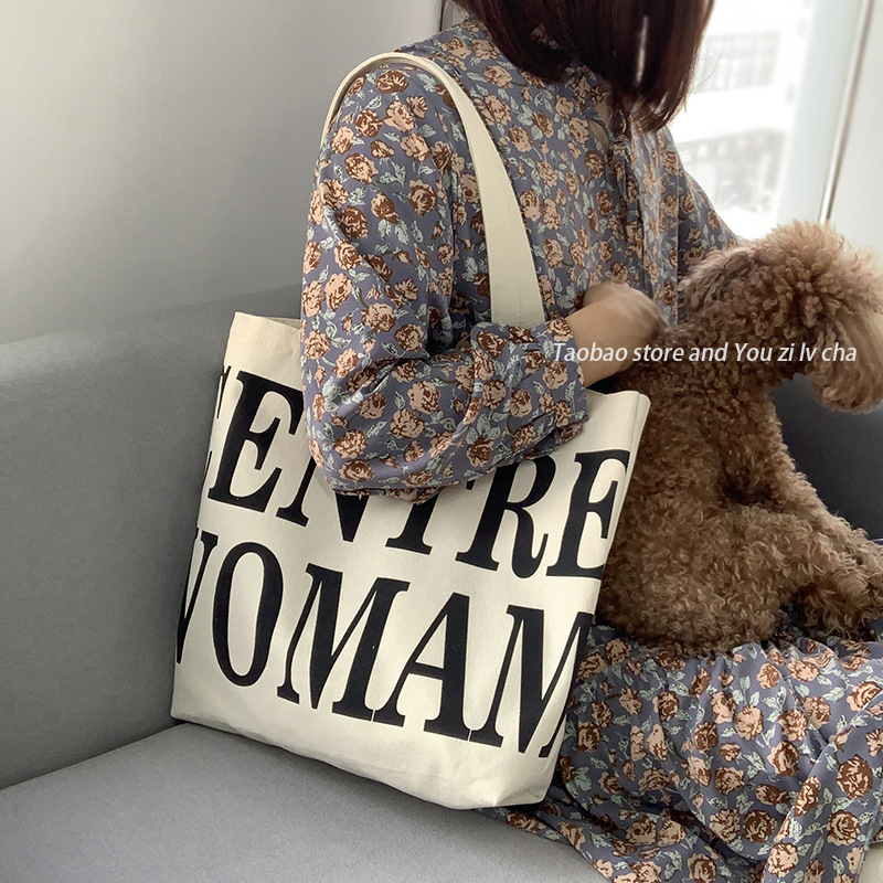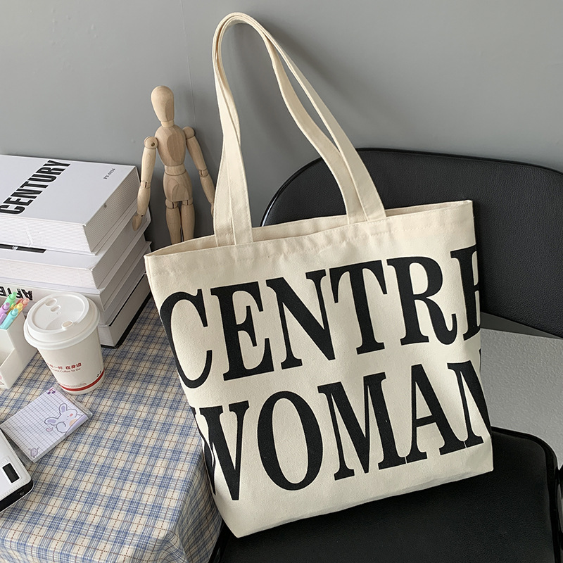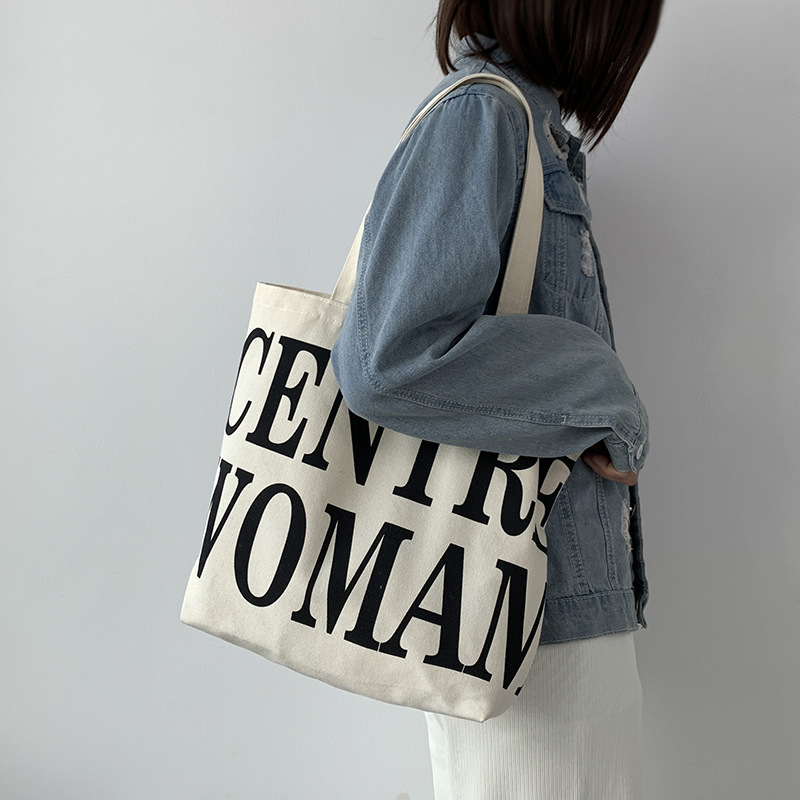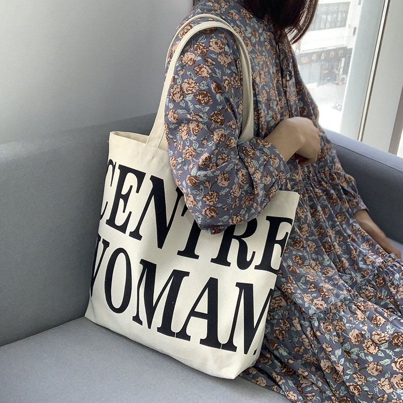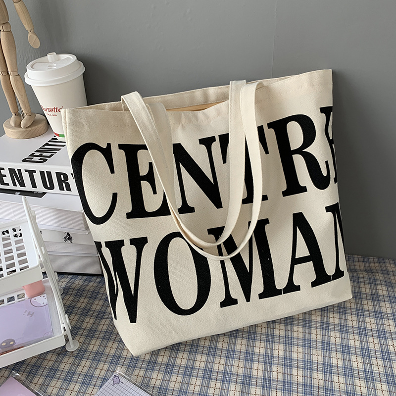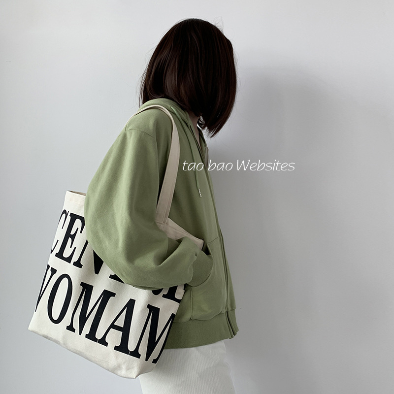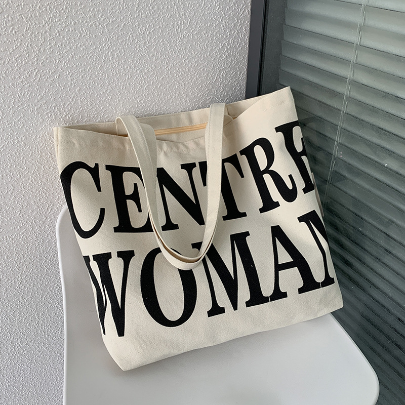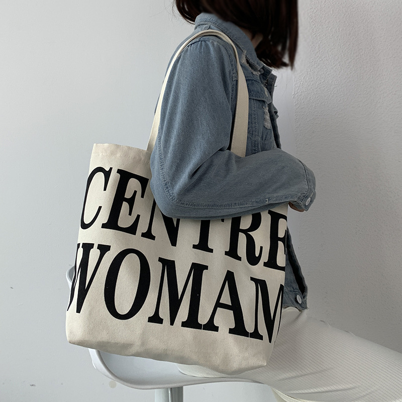 Letra simple bolsa de lona Estilo europeo artístico de estilo coreano para mujer bolsa de clase de estudiante de gran capacidad verano