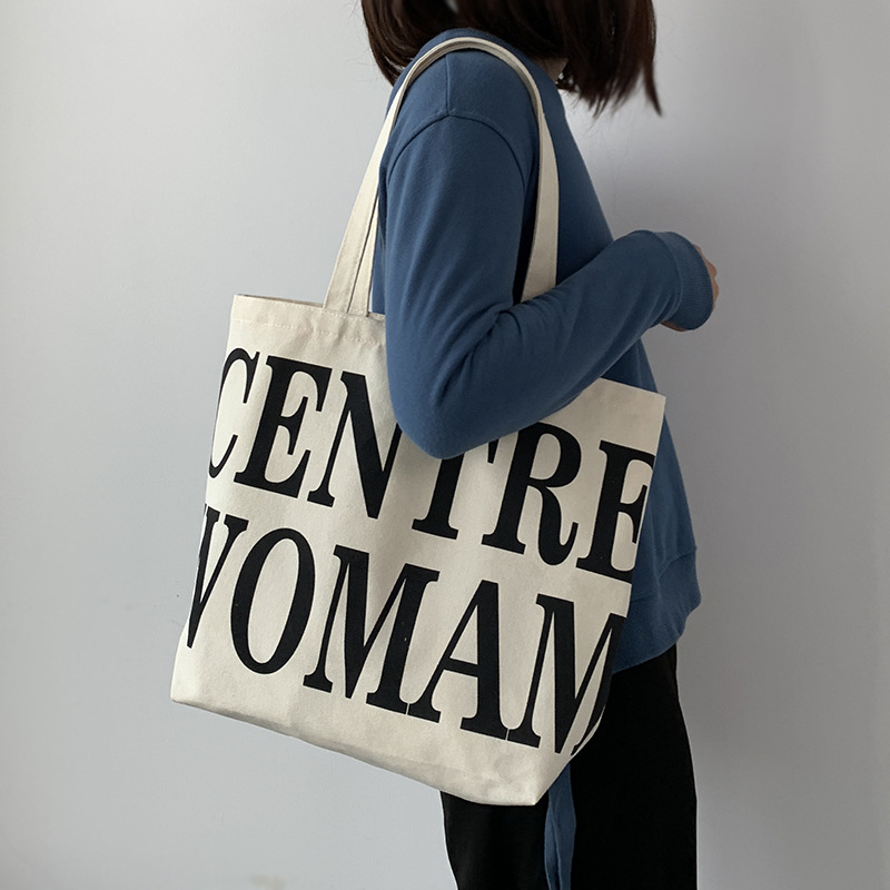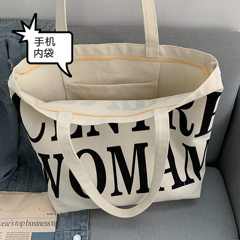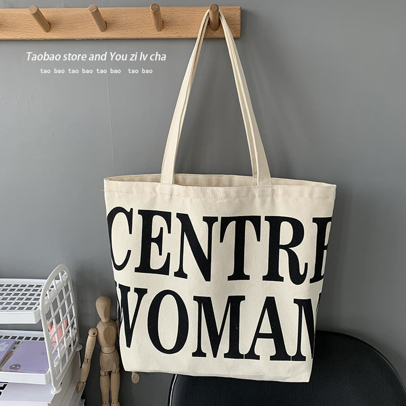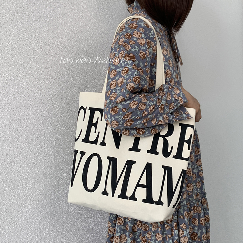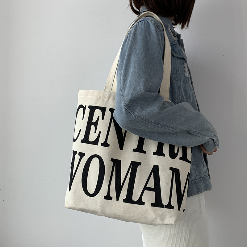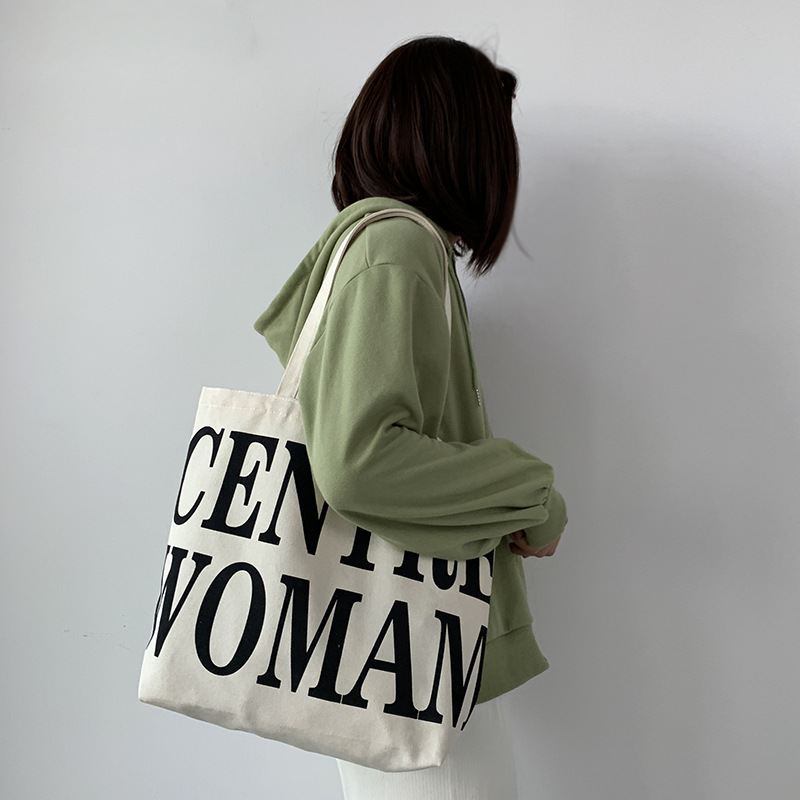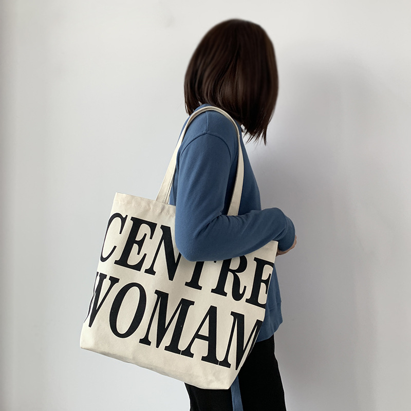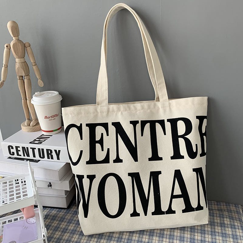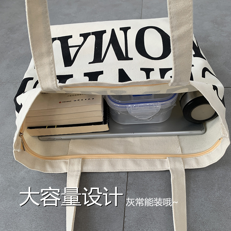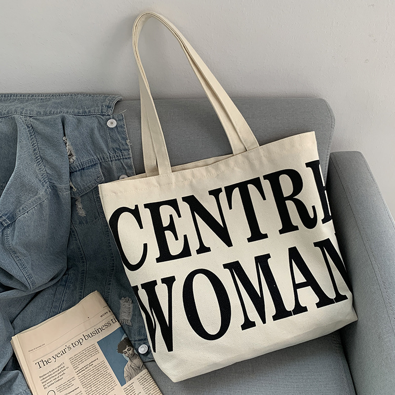 Letra simple bolsa de lona Estilo europeo artístico de estilo coreano para mujer bolsa de clase de estudiante de gran capacidad verano