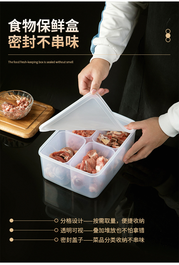 Refrigerador caja de almacenamiento de carne congelada crujiente compartimiento caja de embalaje de alimentos grado alimenticio carne congelador caja de organización