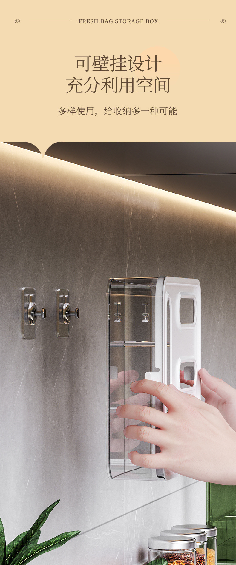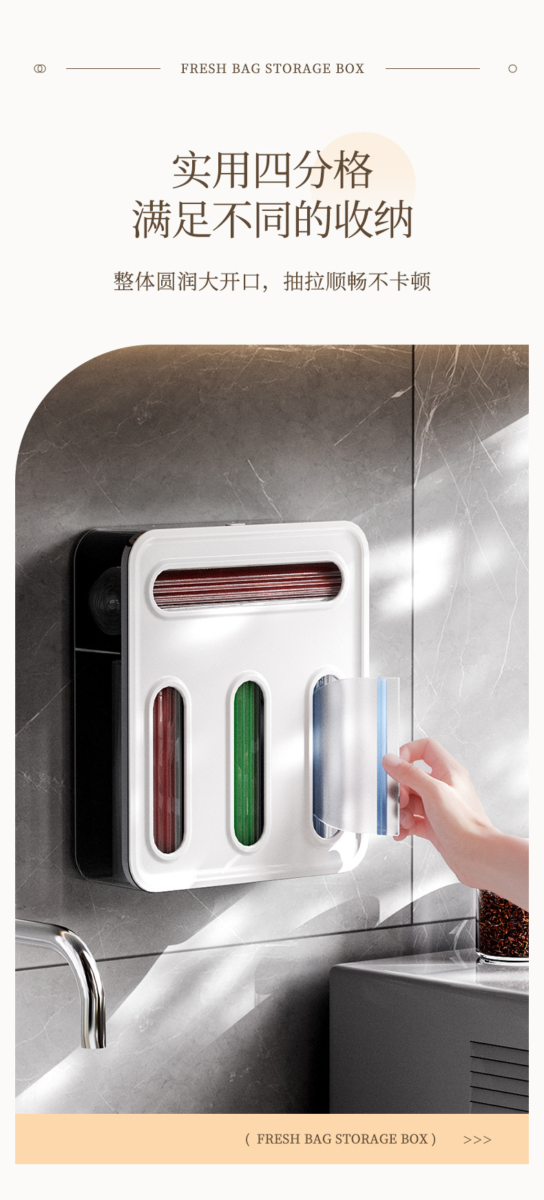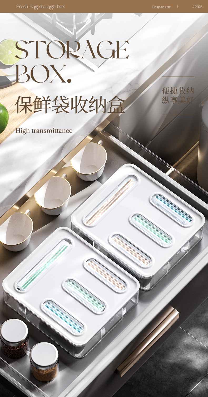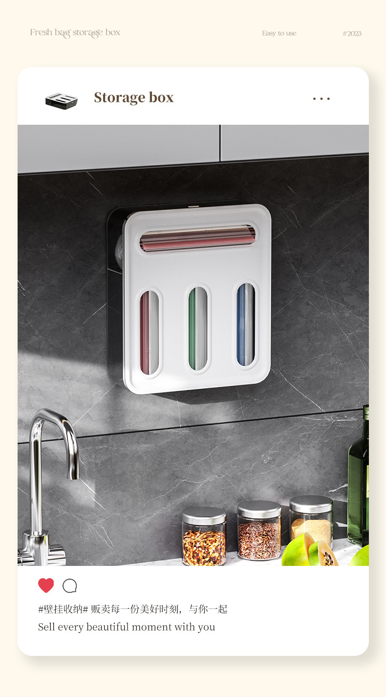 Caja de almacenamiento de bolsa de mantenimiento fresco dedicada transfronteriza Caja de clasificación de bolsa de mantenimiento fresco de escritorio Caja de almacenamiento de bolsa ziplock de cocina artefacto colgante de pared