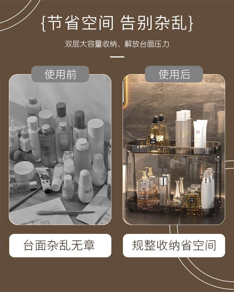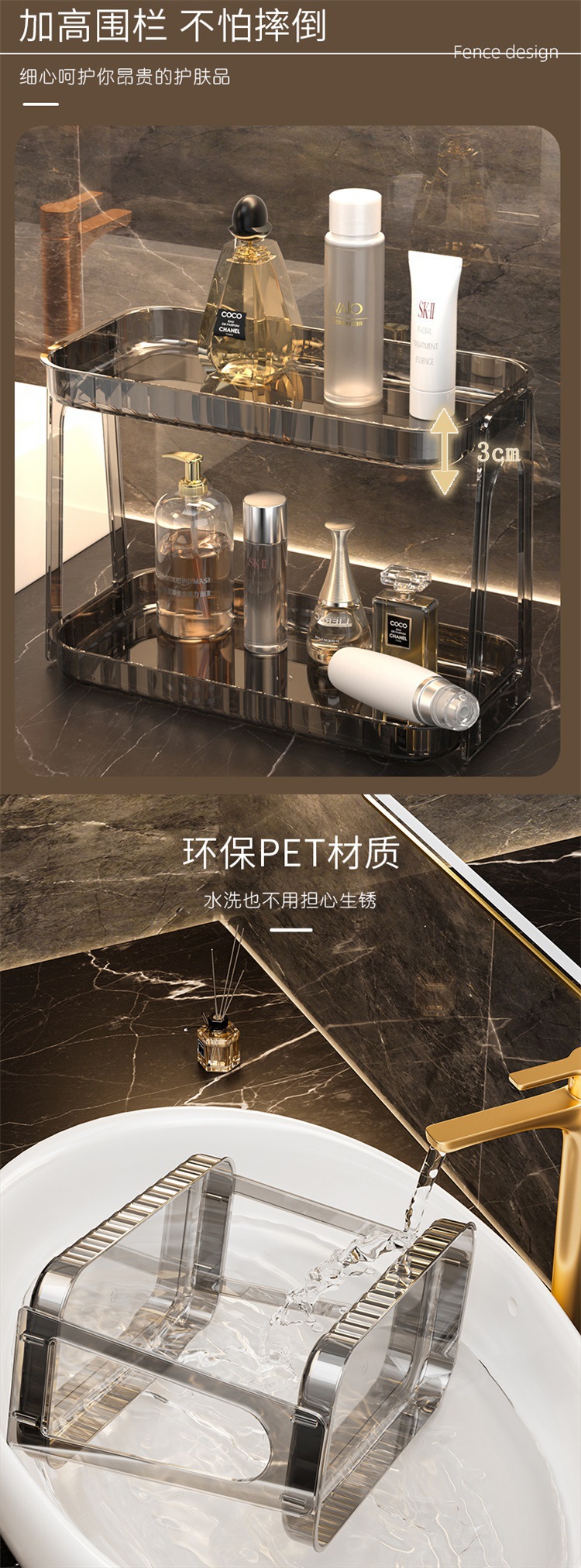 Baño doble capa espacio grande cosméticos almacenamiento rack luz lujo baño lavabo cuidado de la piel suministros de almacenamiento rack al por mayor
